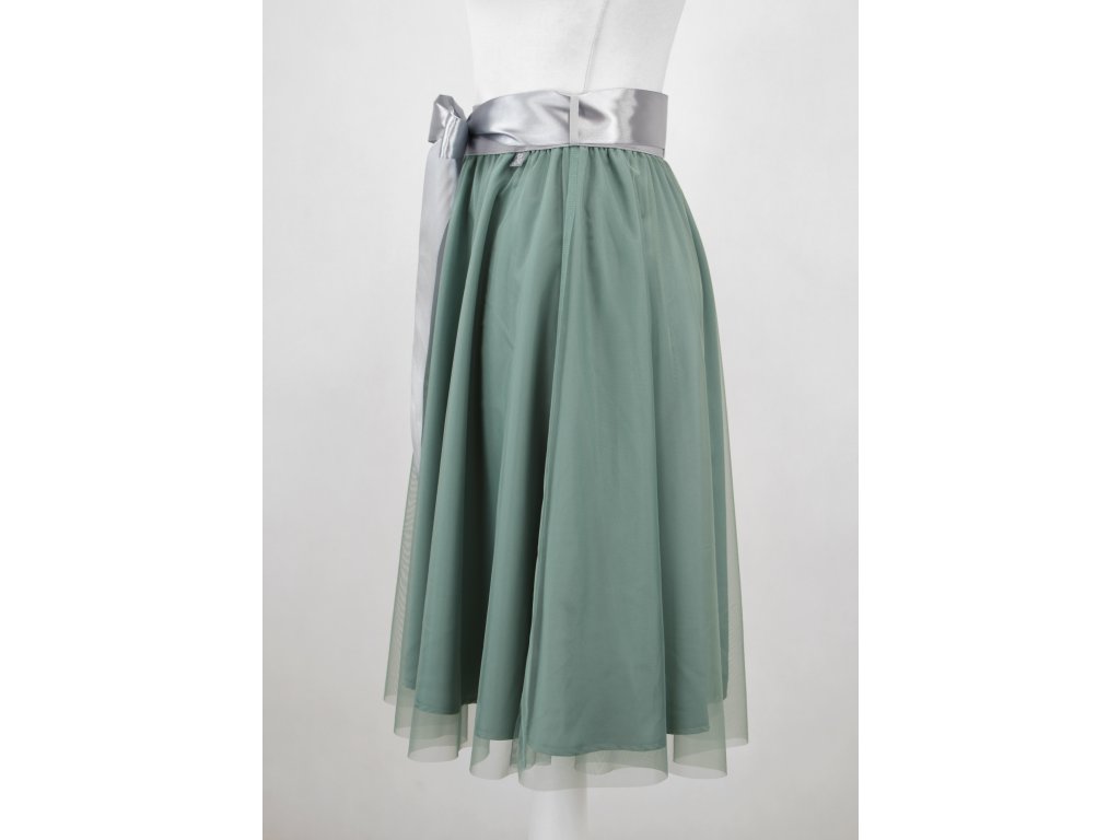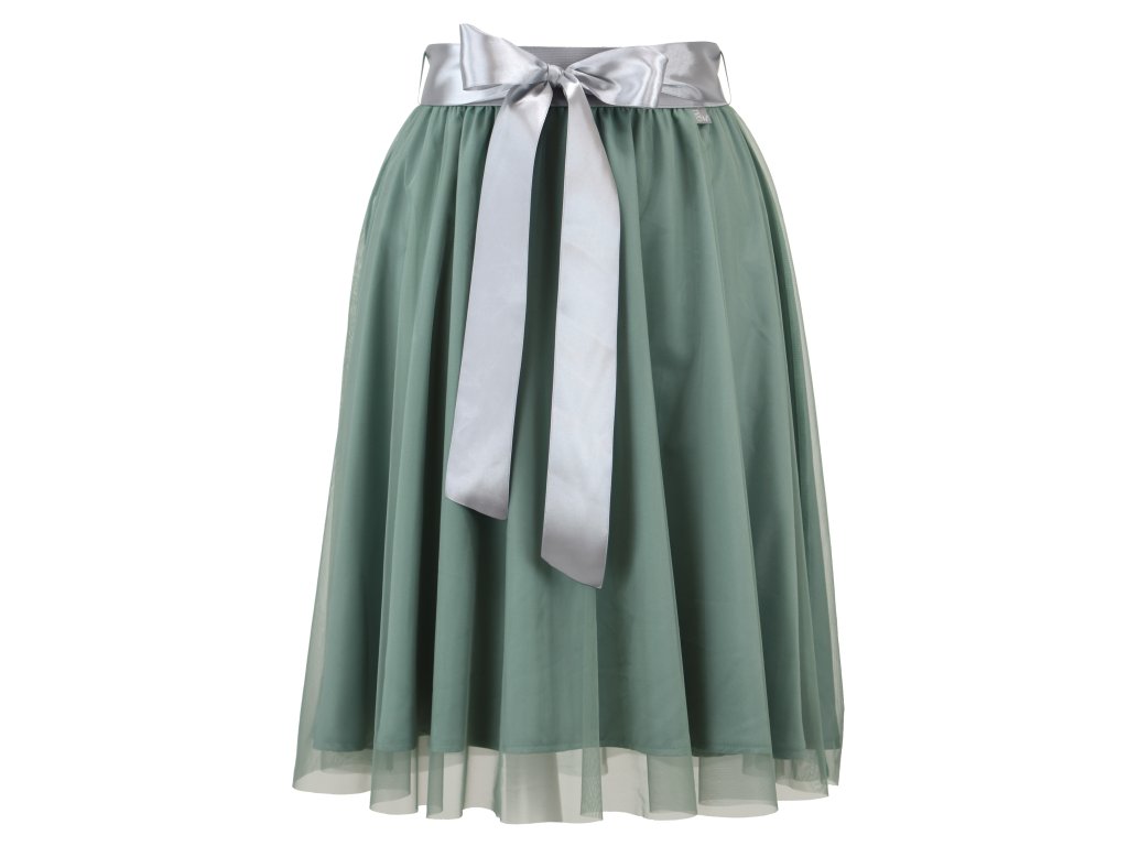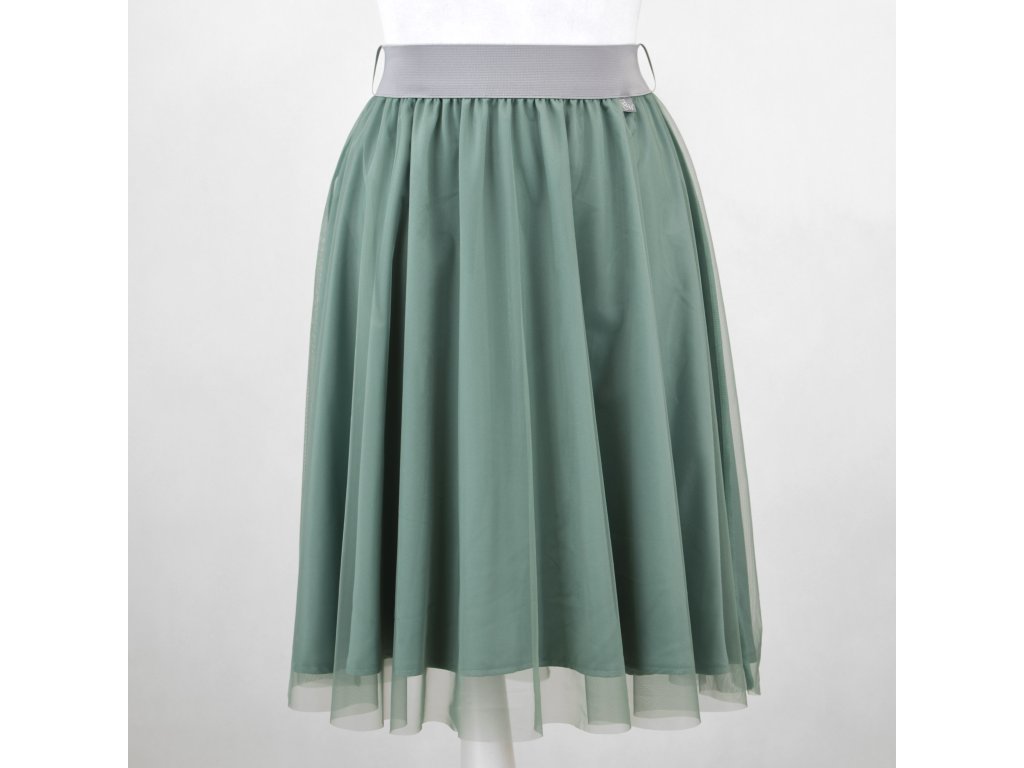 Dámská sukně s elastickou gumou do pasu, půlkolového střihu, s tylem. Sukně nemá podšívku. Délka je měřena bez tylu - tyl přesahuje cca o 5 cm přes sukni.