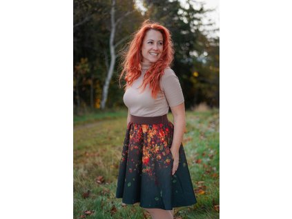 Sukně vychází ze střihu "půlkolových šatů" a je tvarovaná. Není tak objemná jako kolová, ale i tak si drží hezky svůj tvar... :)