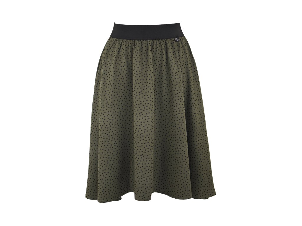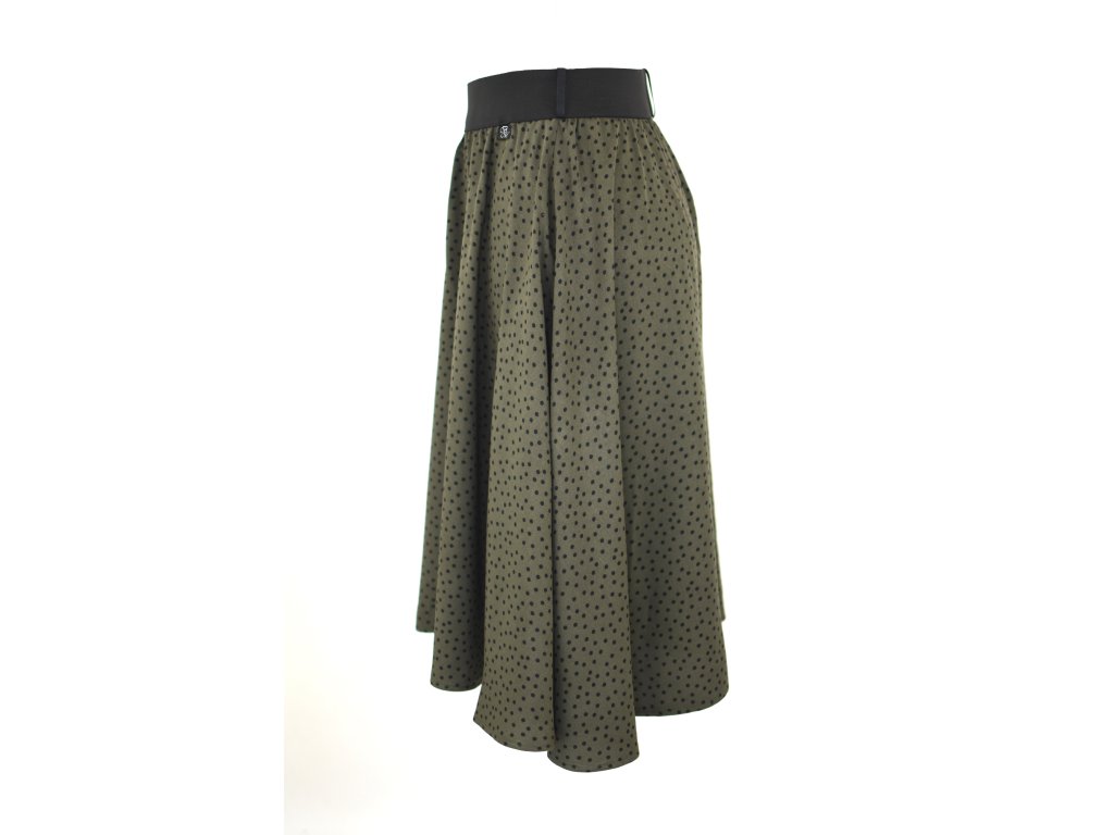Dámská sukně s elastickou gumou do pasu, půlkolového střihu se skrytými kapsami v bocích, bez podšívky.