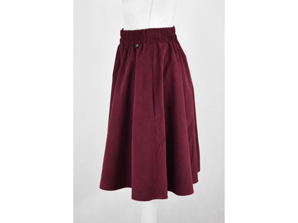 Půlkolová sukně - manšestrová - vínová