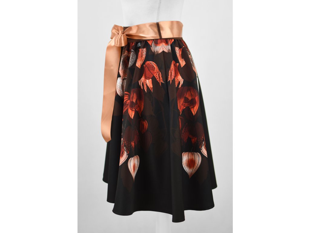Dámská sukně s elastickou gumou do pasu, půlkolového střihu se skrytými kapsami v bocích, s podšívkou. Sukně vychází ze střihu "půlkolových šatů" a je tvarovaná. Není tak objemná jako kolová, ale i tak si drží hezky svůj tvar... :)