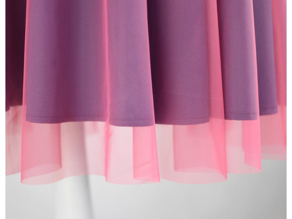 Půlkolová sukně - guma - modrá a růžový tyl