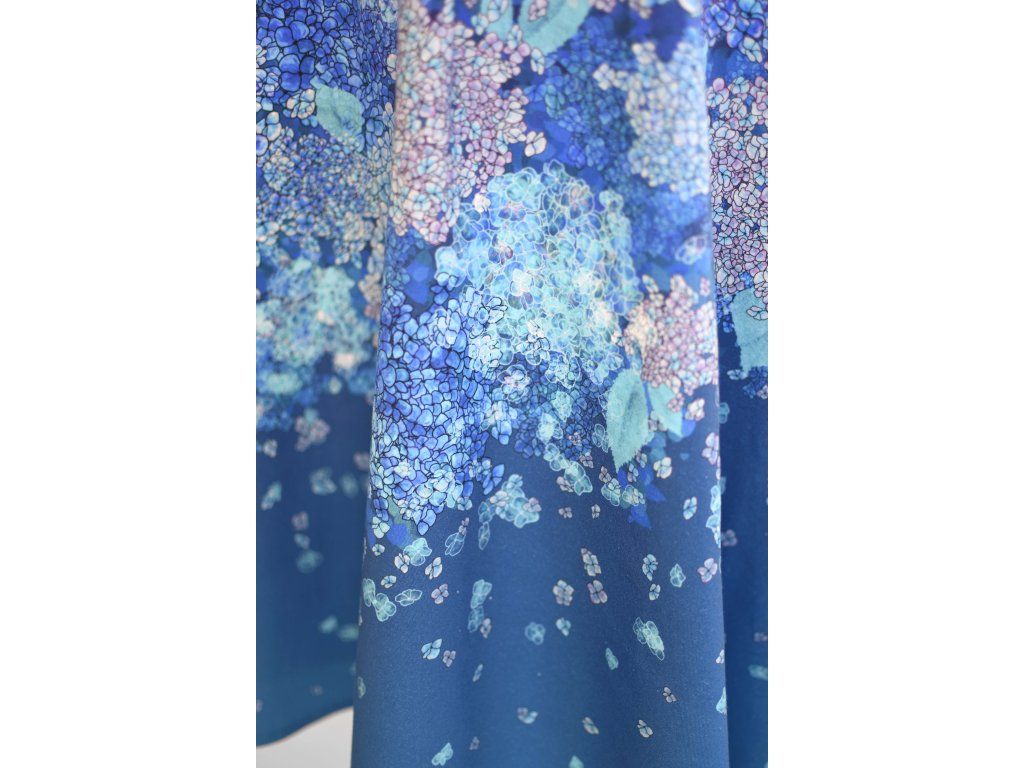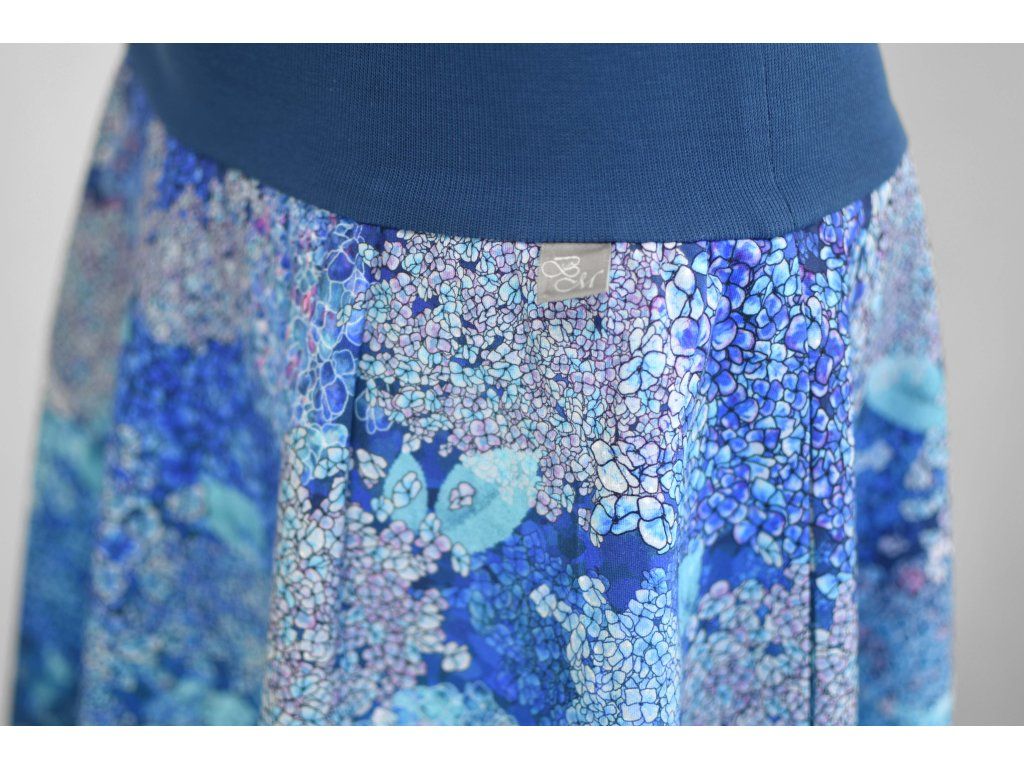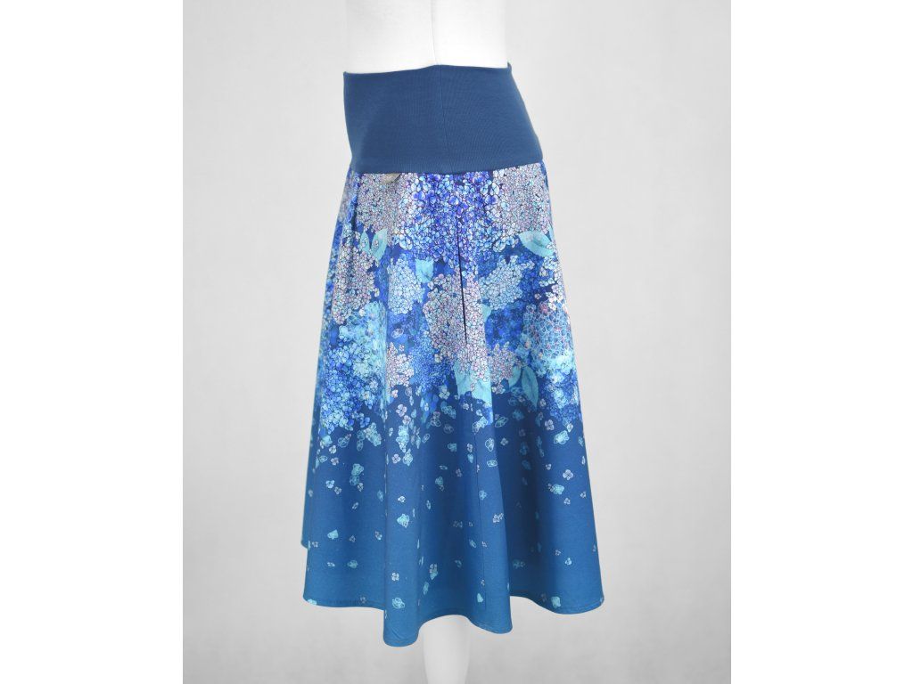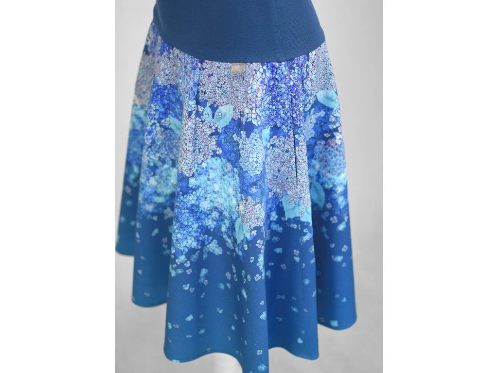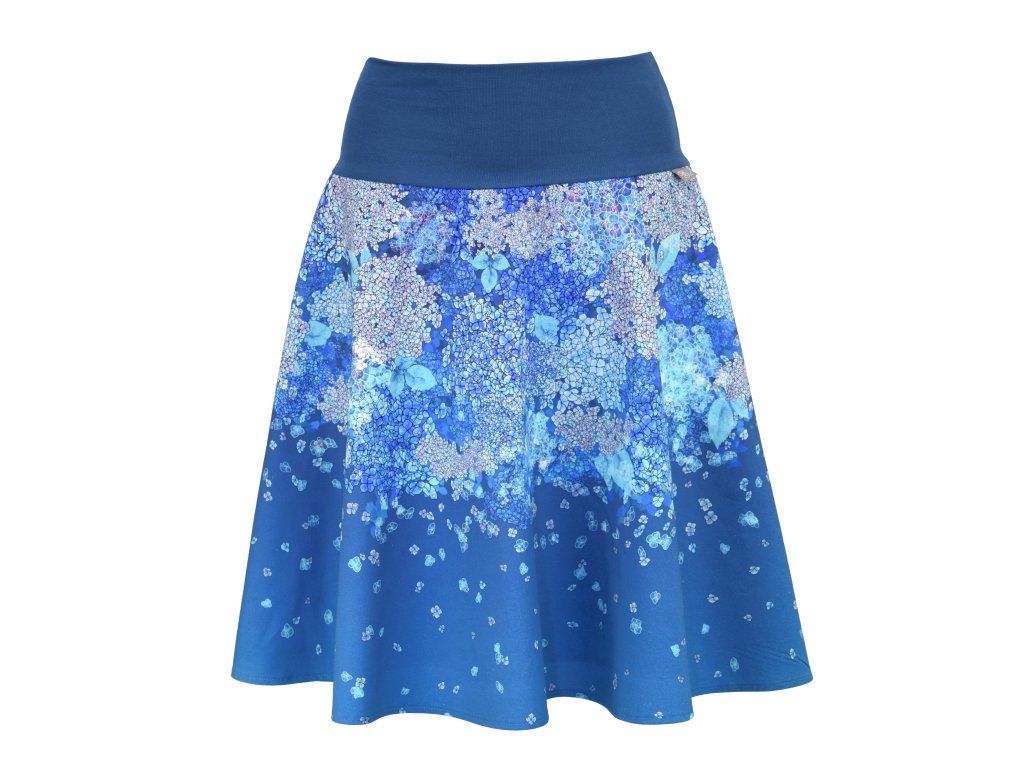 Půlkolová sukně - náplet - modré hortenzie
