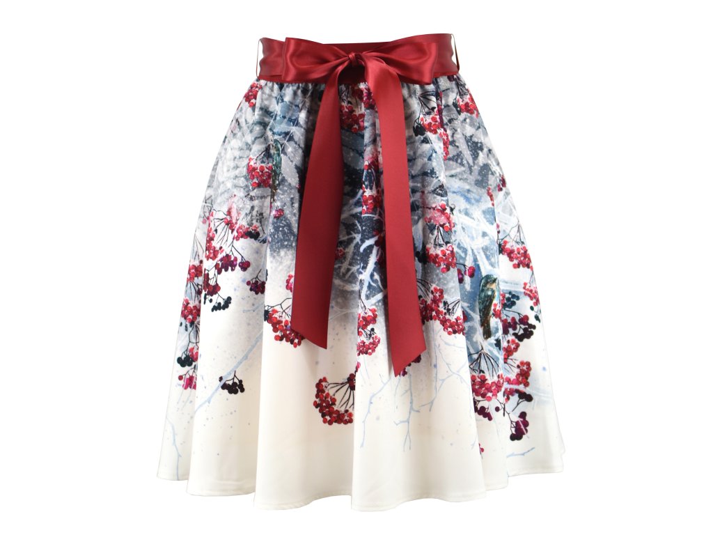 Půlkolová sukně - guma - mrazivé jeřabiny