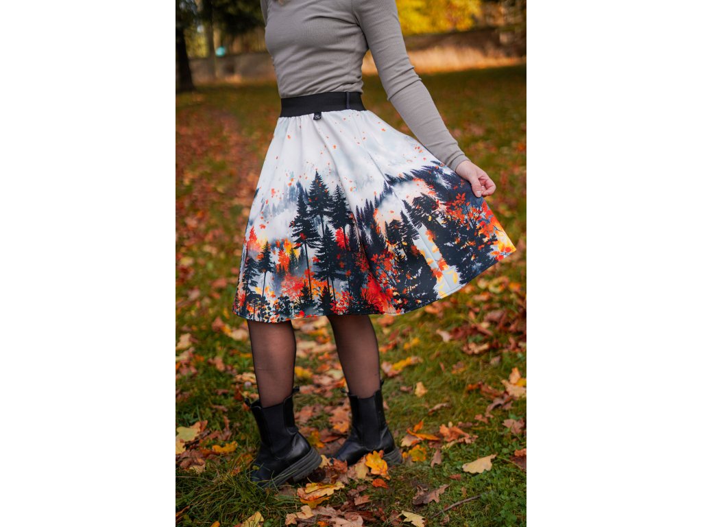 Půlkolová sukně - guma - podzimní les