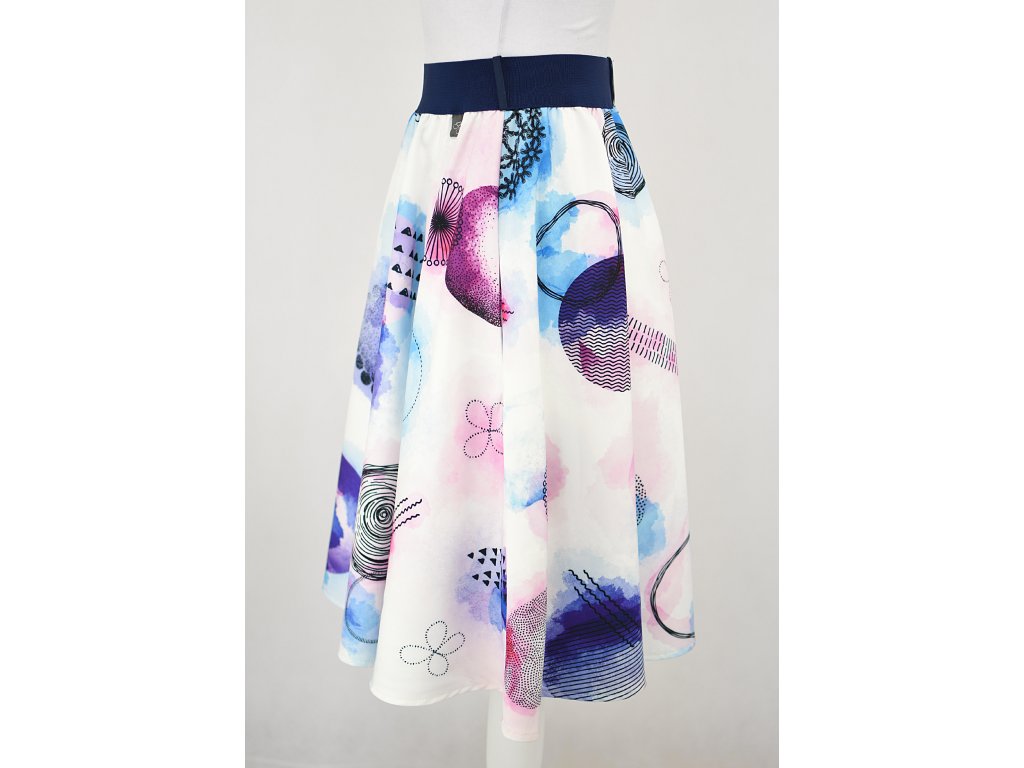 Dámská sukně s elastickou gumou do pasu, půlkolového střihu se skrytými kapsami v bocích, s podšívkou. Sukně vychází ze střihu "půlkolových šatů" a je tvarovaná. Není tak objemná jako kolová, ale i tak si drží hezky svůj tvar... :)