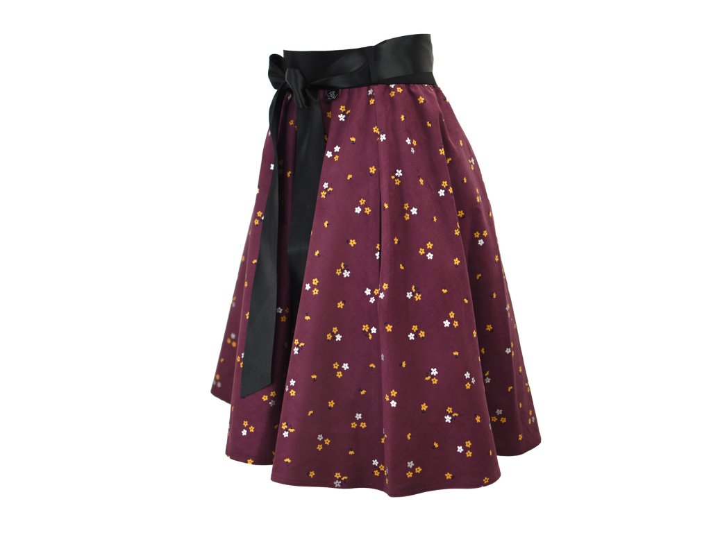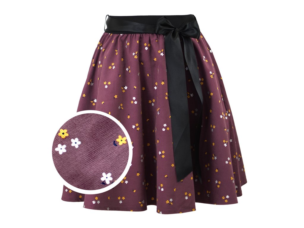 Půlkolová sukně do gumy - světle vínová a kytičky
