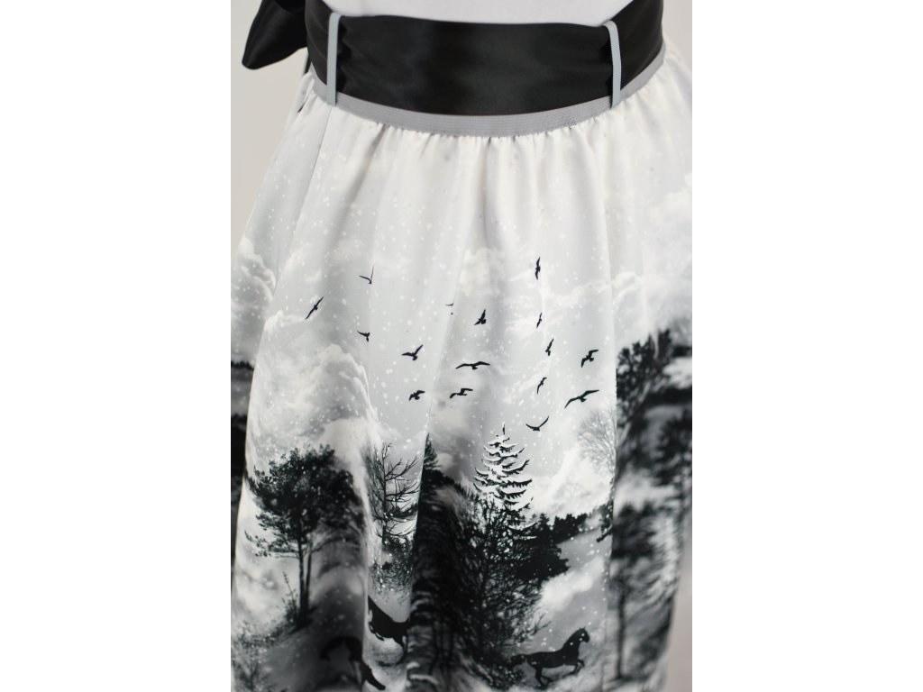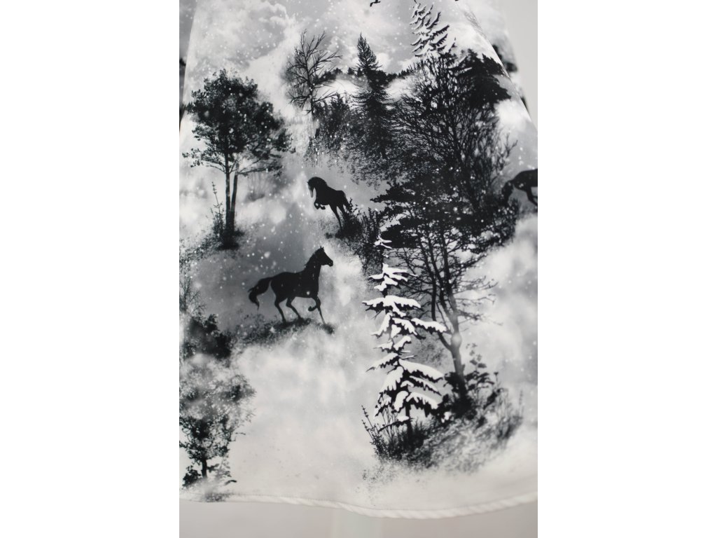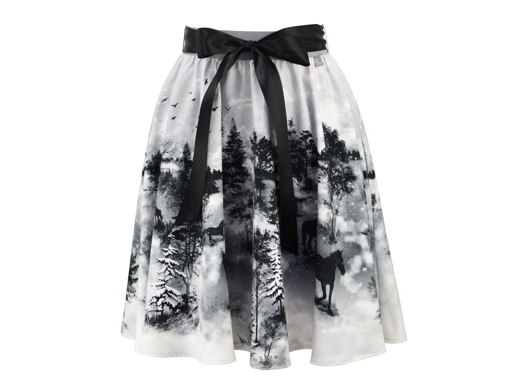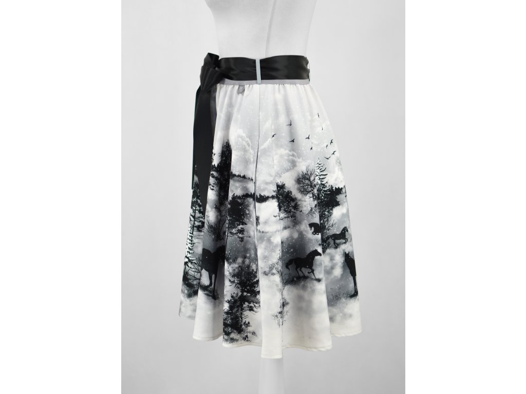 Půlkolová sukně - guma - koně ve vánici