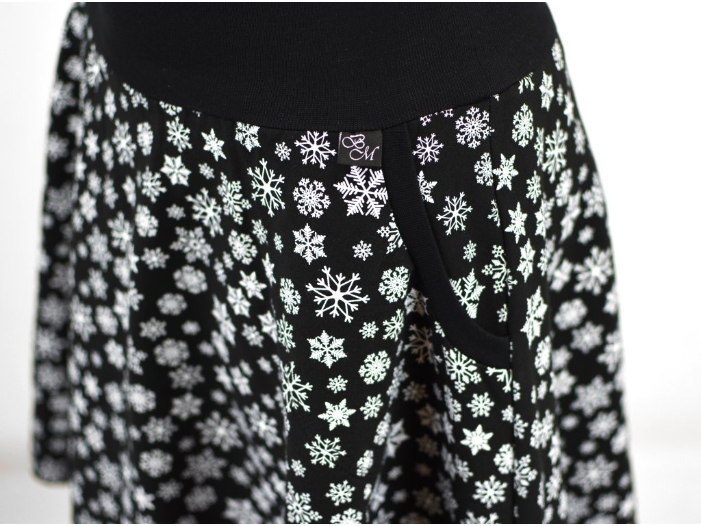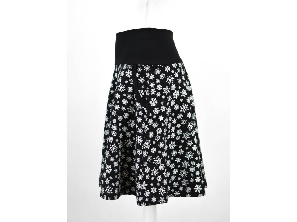 Půlkolová sukně - náplet - vločky na černé