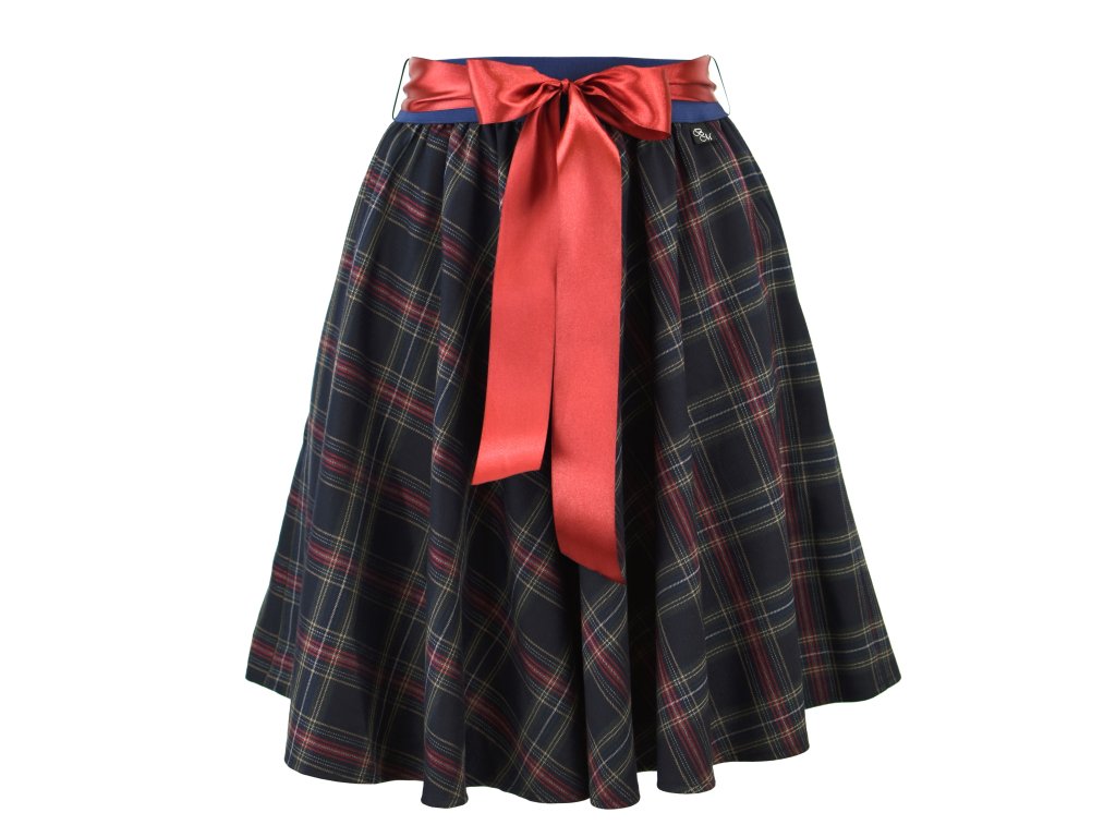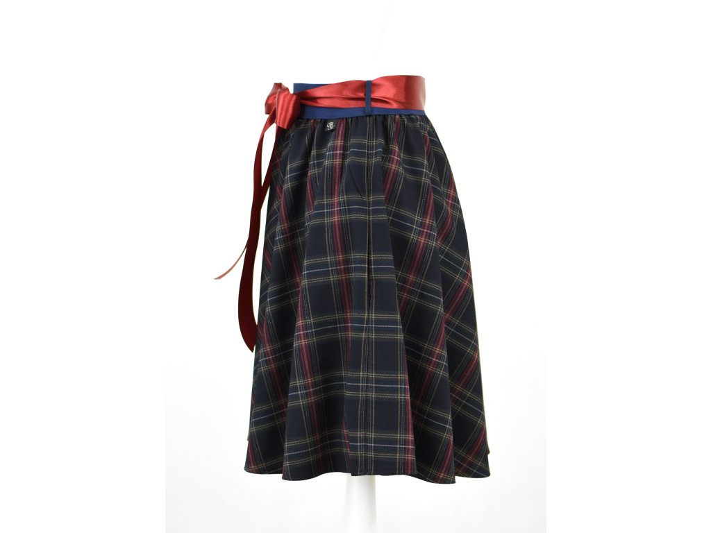 Půlkolová sukně - guma - temně modrá kostka