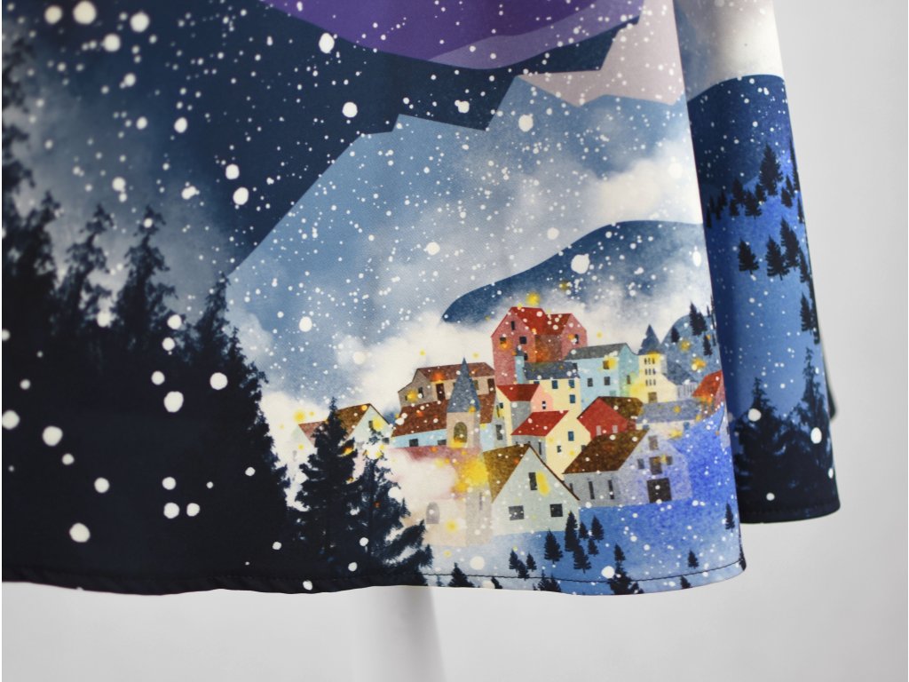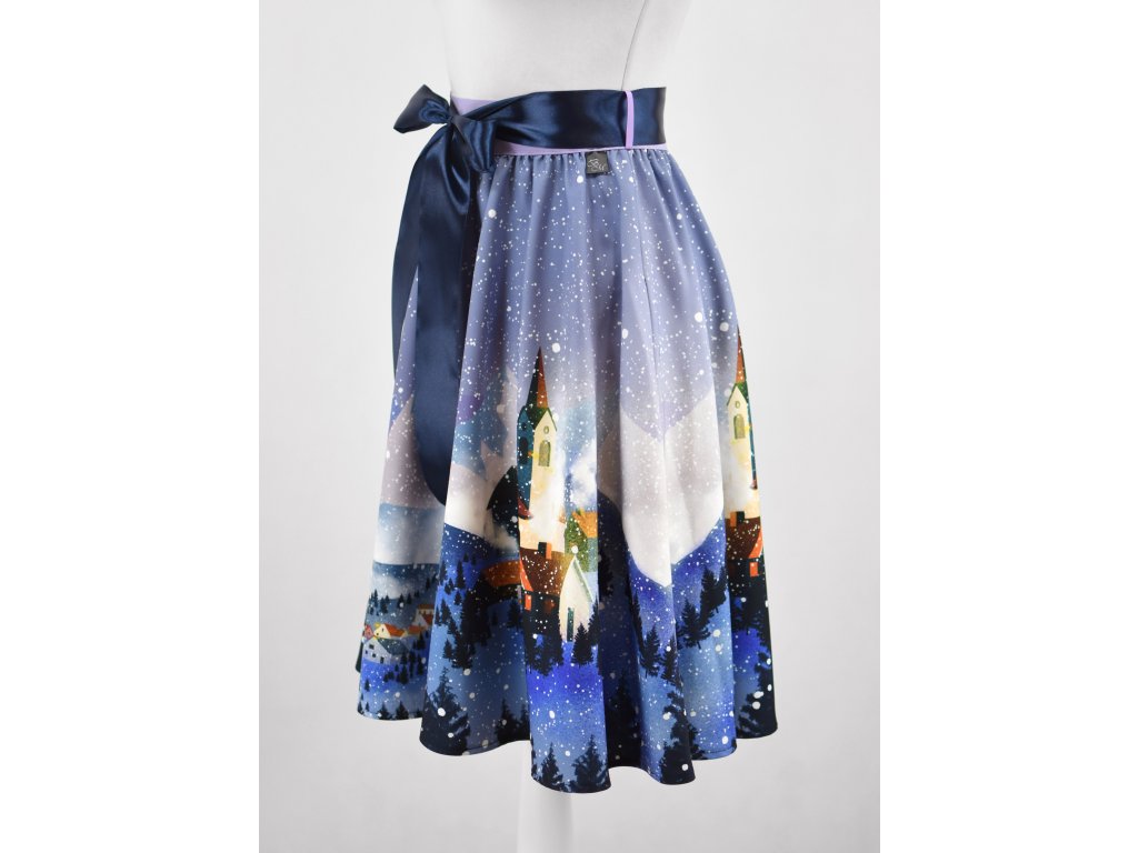 Půlkolová sukně - guma - vánoční vesnička
