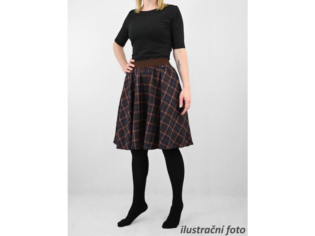 Dámská sukně s elastickou gumou do pasu, půlkolového střihu se skrytými kapsami v bocích, s podšívkou. Sukně vychází ze střihu "půlkolových šatů" a je tvarovaná. Není tak objemná jako kolová, ale i tak si drží hezky svůj tvar... :)