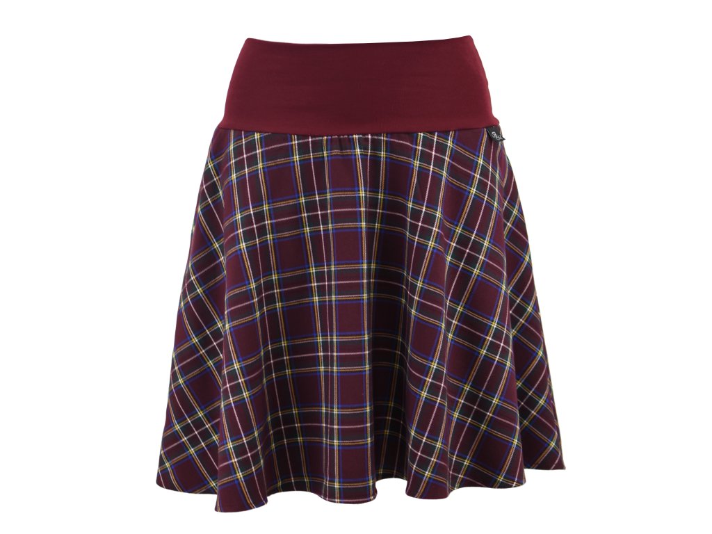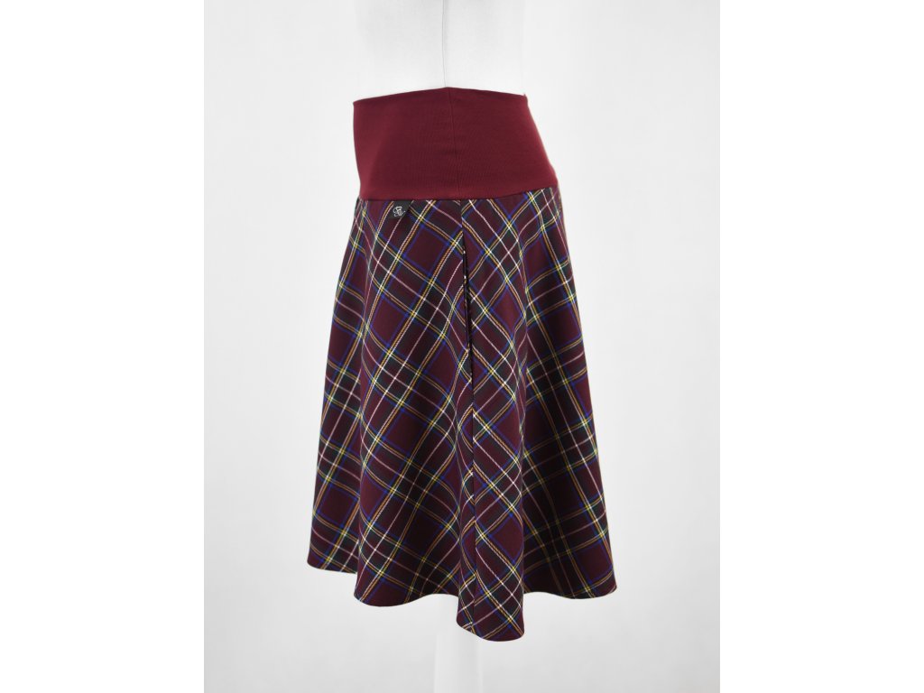 Dámská sukně půlkolového střihu s dvojitým elastickým pasovým okrajem vhodným pro většinu velikostí. Podšité polyesterovou látkou, která je vhodná jak na punčochy, tak na holé nohy a sukně se dá nosit celoročně. Z rubu elastického pasu je nechán otvor na případné vložení gumy na zpevnění či stažení pasu.