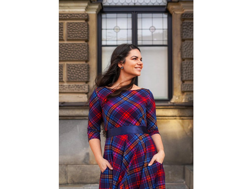 Půlkolové šaty 3/4 rukáv - barevné kostky