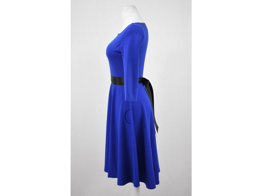 Půlkolové šaty 3/4 rukáv - královsky modré