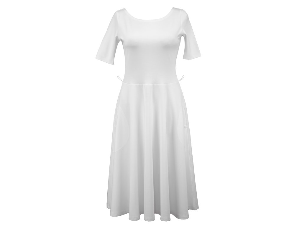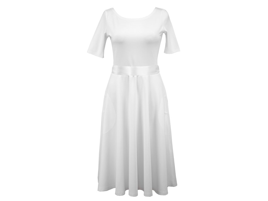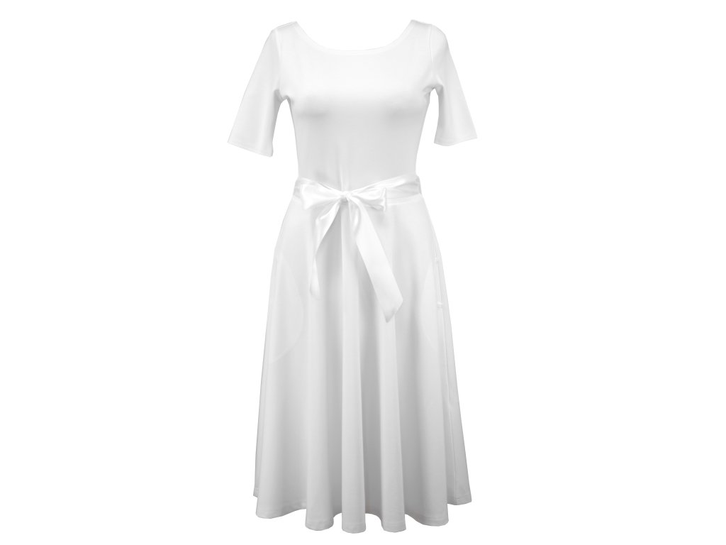 Půlkolové šaty - delší rukáv - bílé II.JAKOST