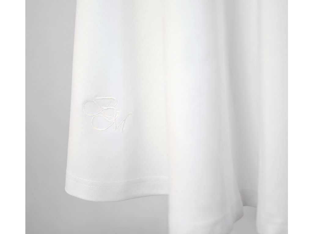 S výšivkou loga BM na sukni.