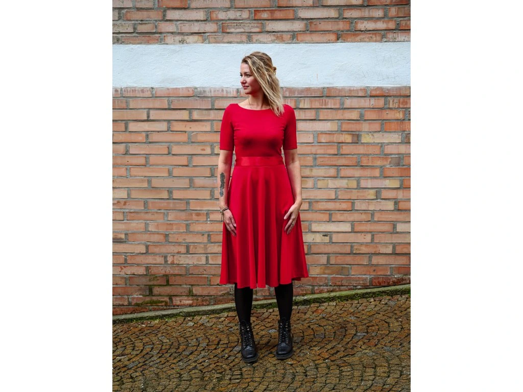 Půlkolové šaty - delší rukáv - červené