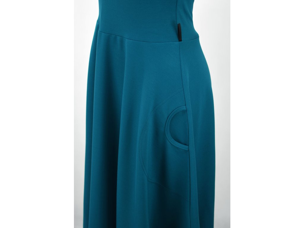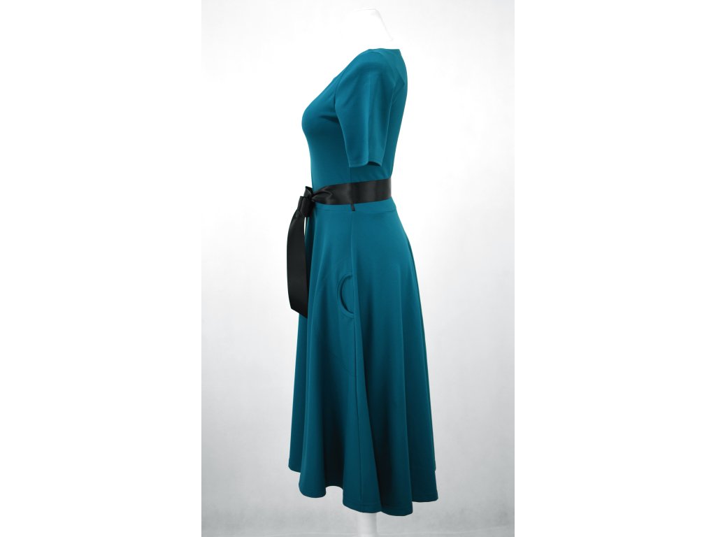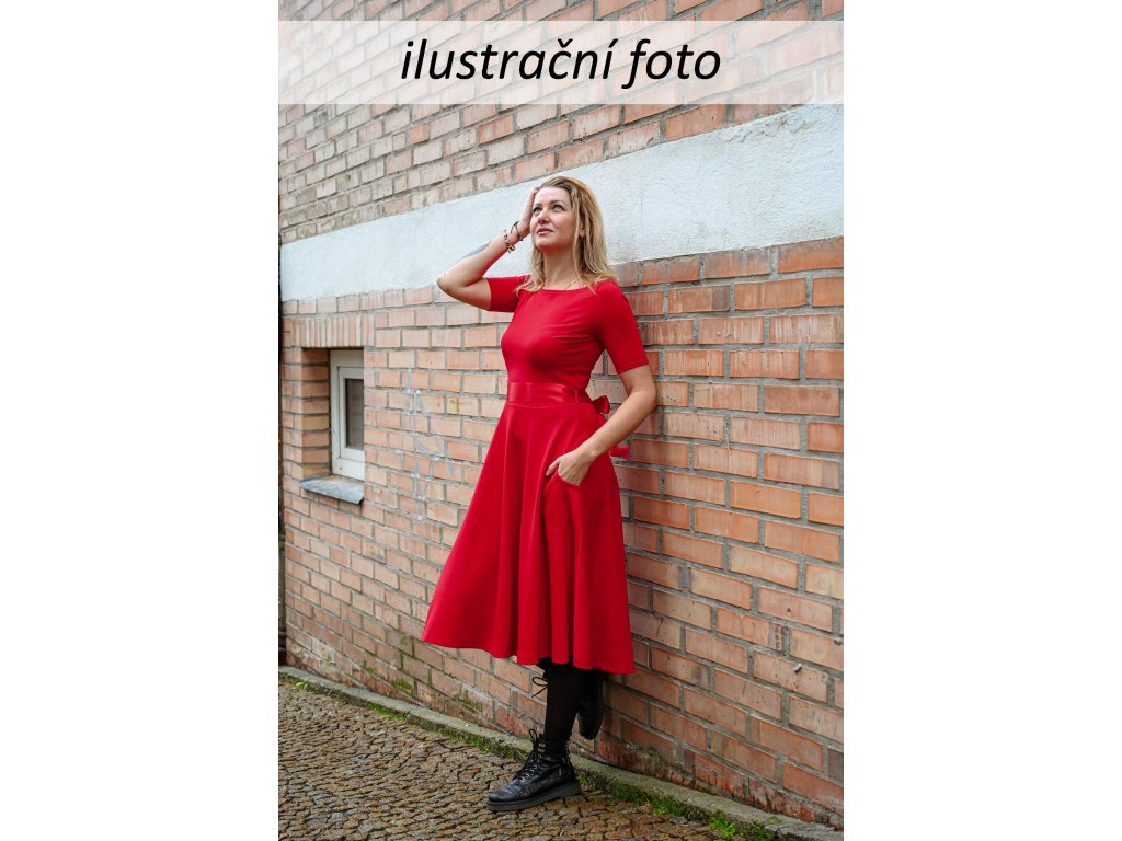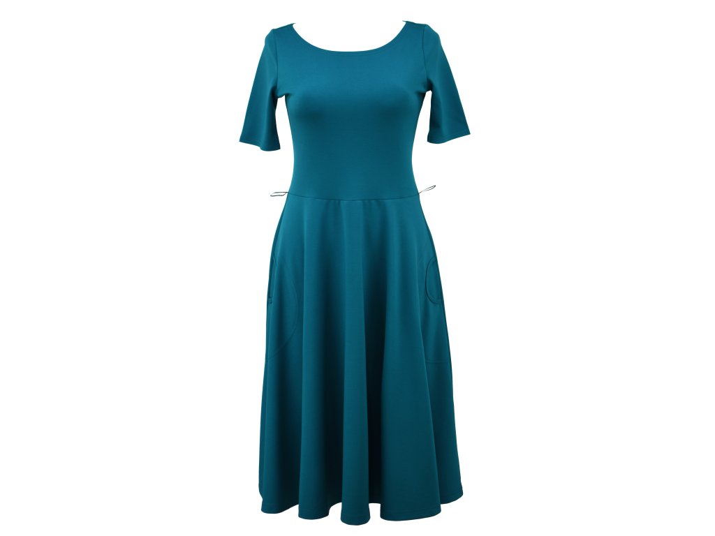 Dámské šaty s půlkolovou sukní. Jsou přestřižené v pase, lehce projmuté, s prodlouženým zadním dílem. Pas je oproti předchozímu střihu o kousek snížený, sukně delší. Mají mírný lodičkový výstřih, v pase poutka na stuhu (můžou se lehce odstranit). Dvě kapsy v bocích. Rukávek je delší, ale stále nad loket (s možností zkrácení na míru).