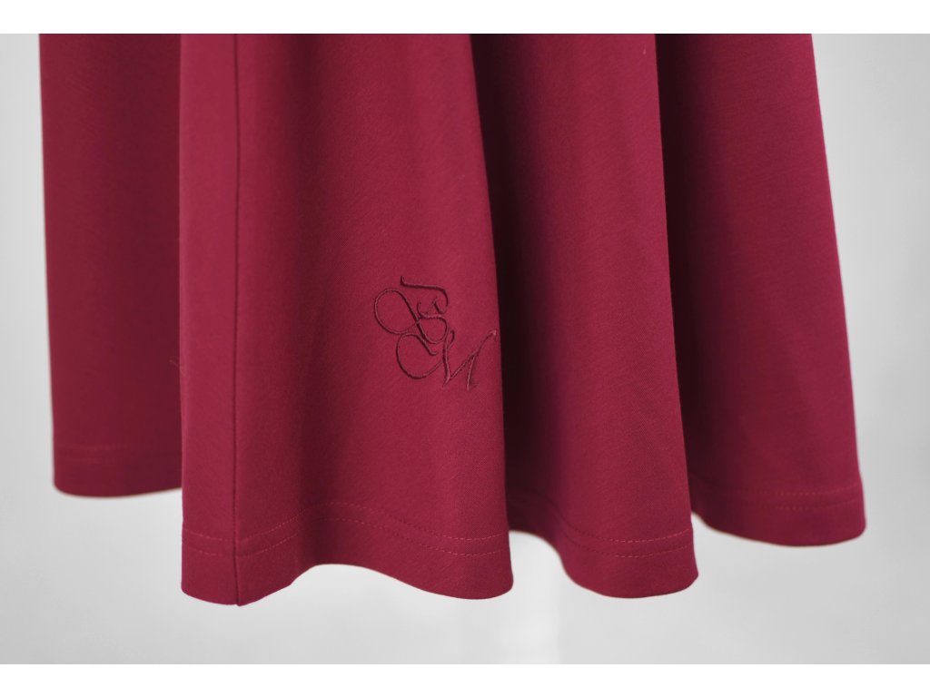 S výšivkou loga BM na sukni.
