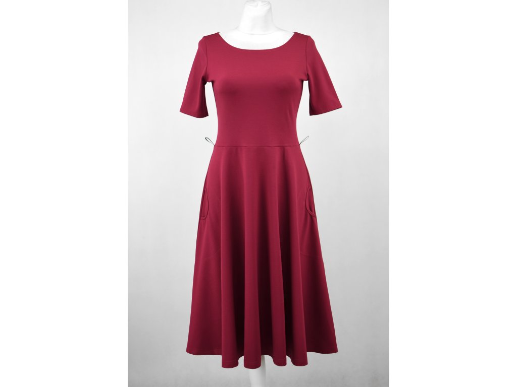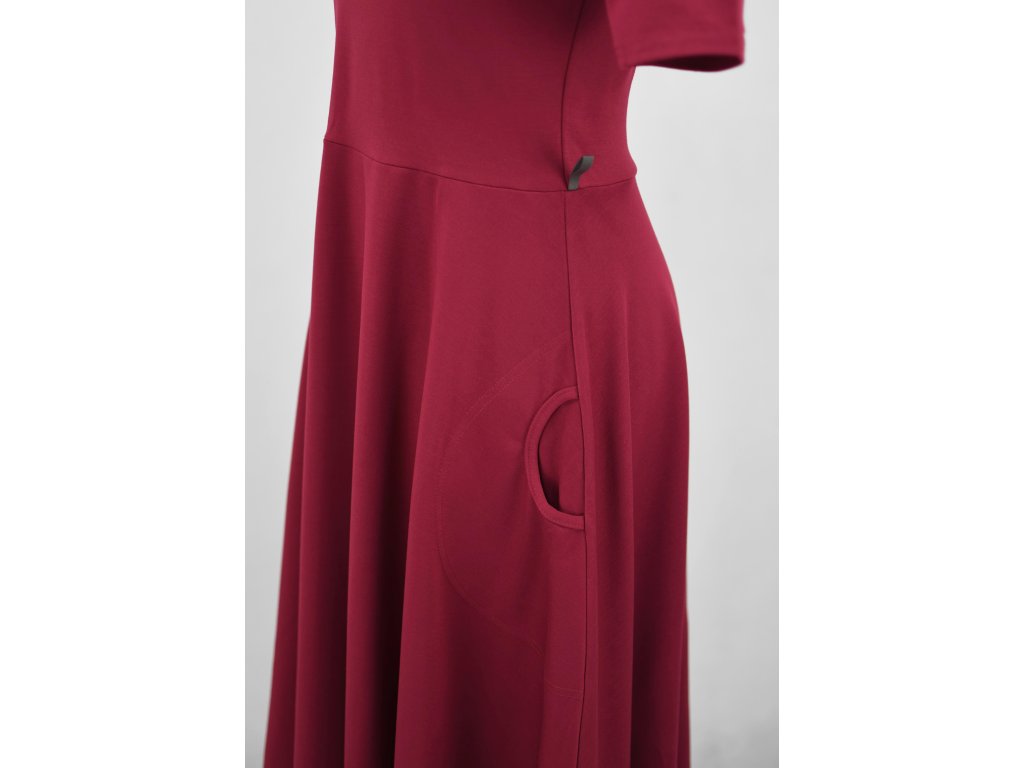 Půlkolové šaty - delší rukáv - tmavě fuchsiové