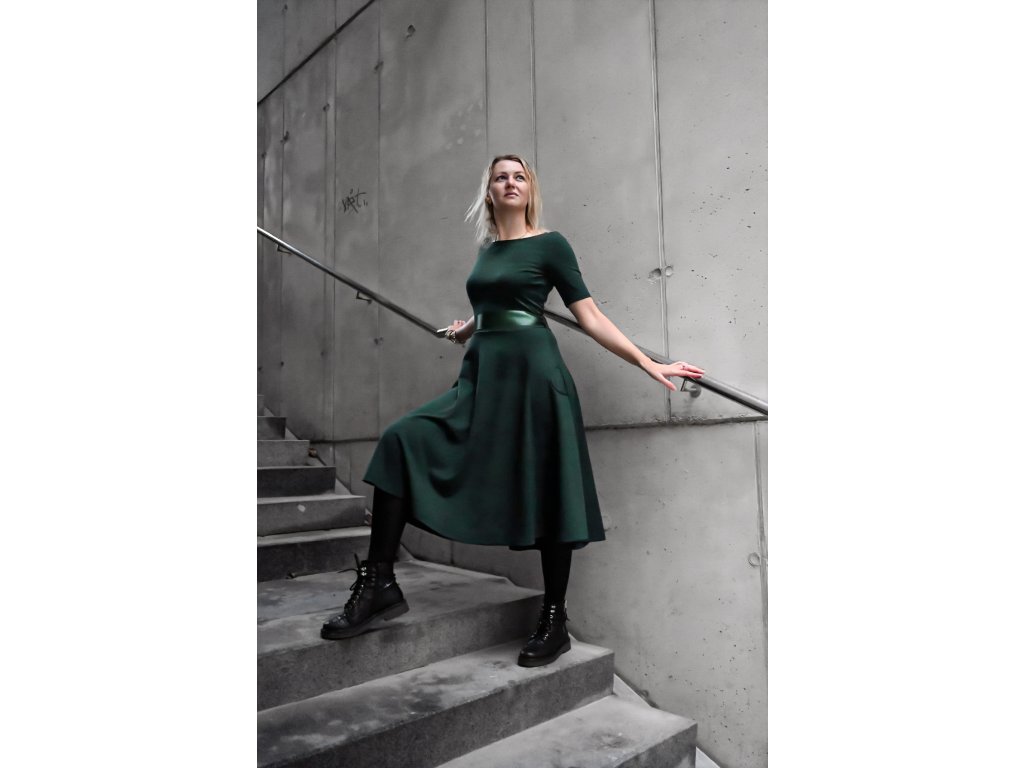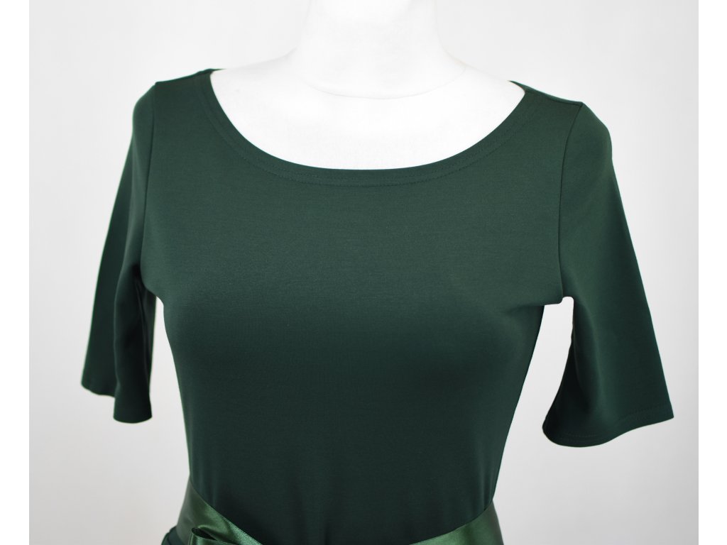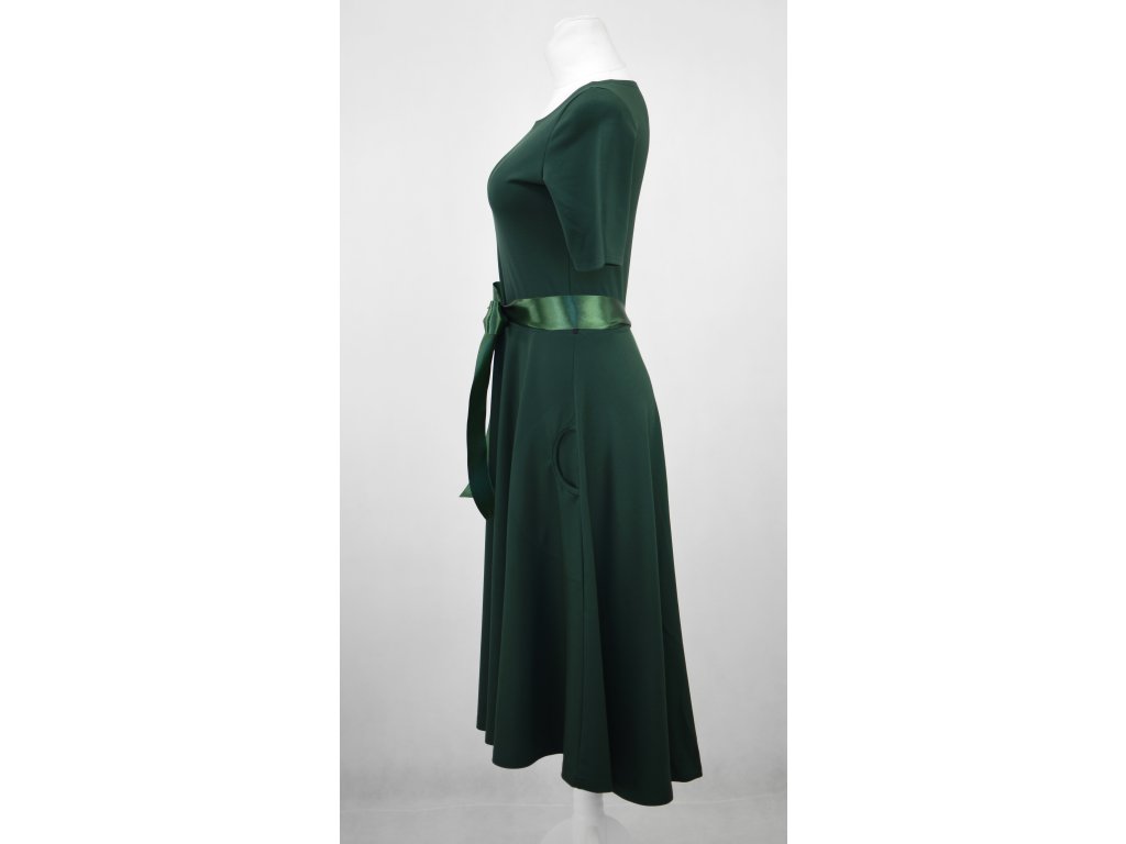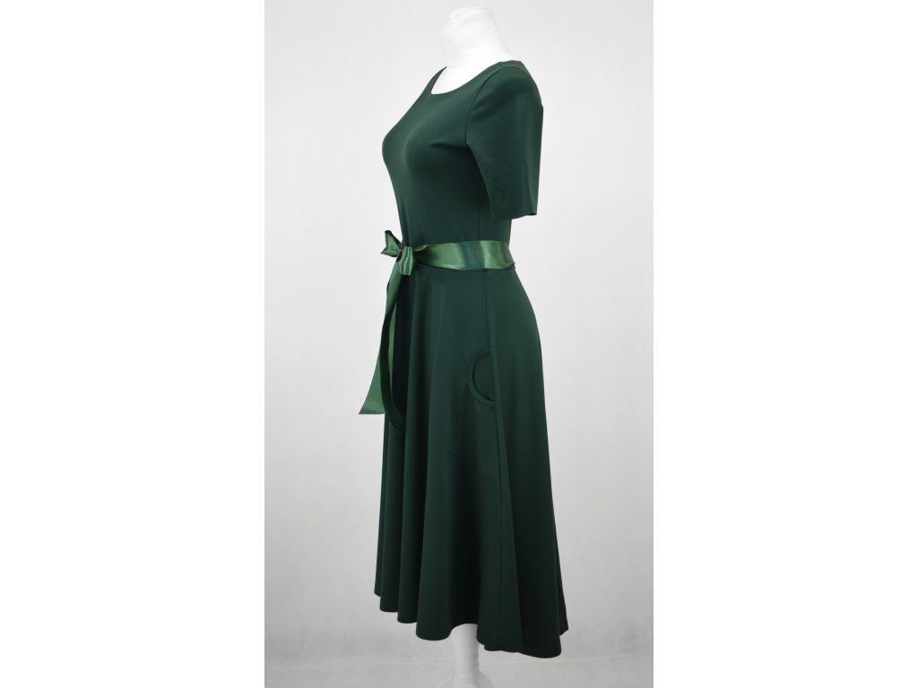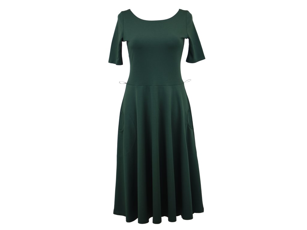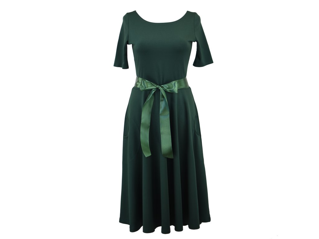 Půlkolové šaty - delší rukáv - tmavě zelené