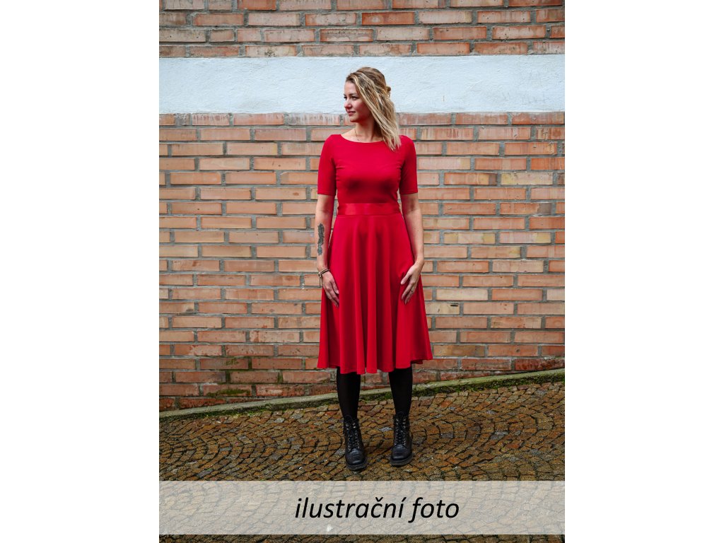 Dámské šaty s půlkolovou sukní. Jsou přestřižené v pase, lehce projmuté, s prodlouženým zadním dílem. Pas je oproti předchozímu střihu o kousek snížený, sukně delší. Mají mírný lodičkový výstřih, v pase poutka na stuhu (můžou se lehce odstranit). Dvě kapsy v bocích. Rukávek je delší, ale stále nad loket (s možností zkrácení na míru).