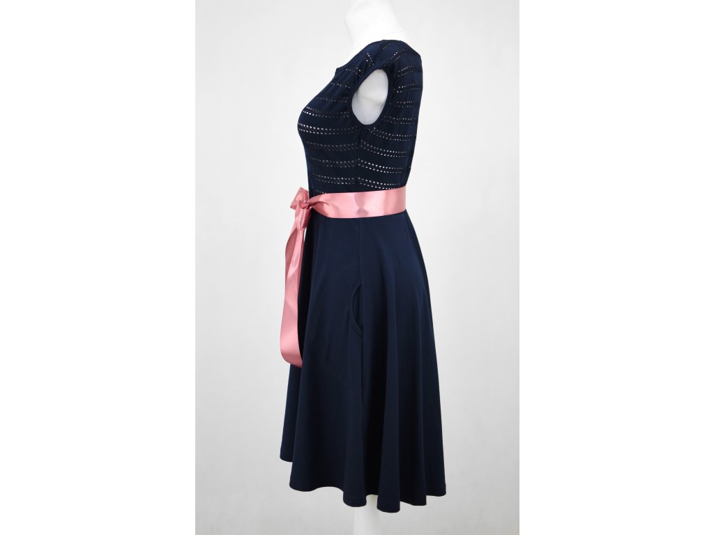 Půlkolové šaty - děrované - modré