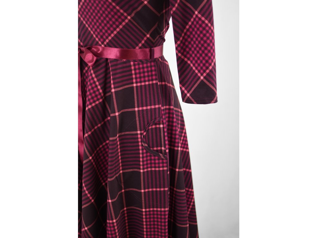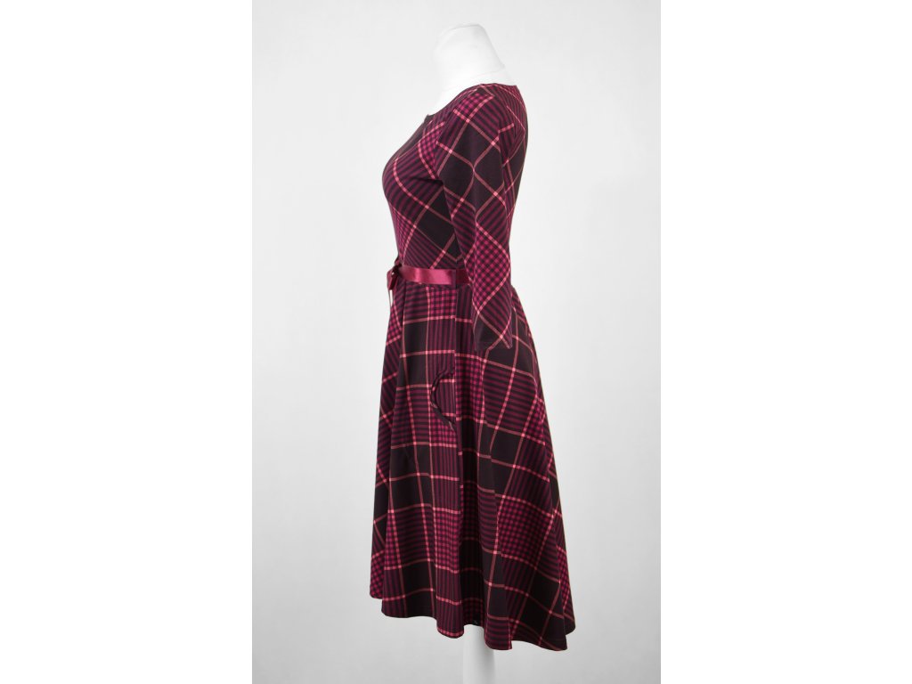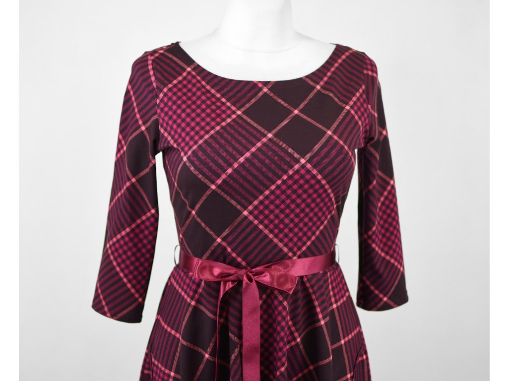 Půlkolové šaty 3/4 rukáv - fialová kostka II.JAKOST