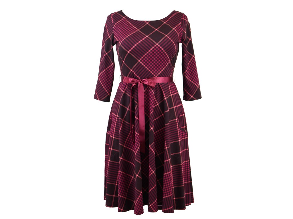 Půlkolové šaty 3/4 rukáv - fialová kostka