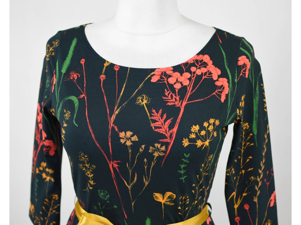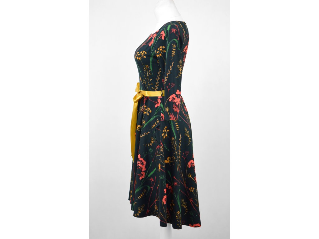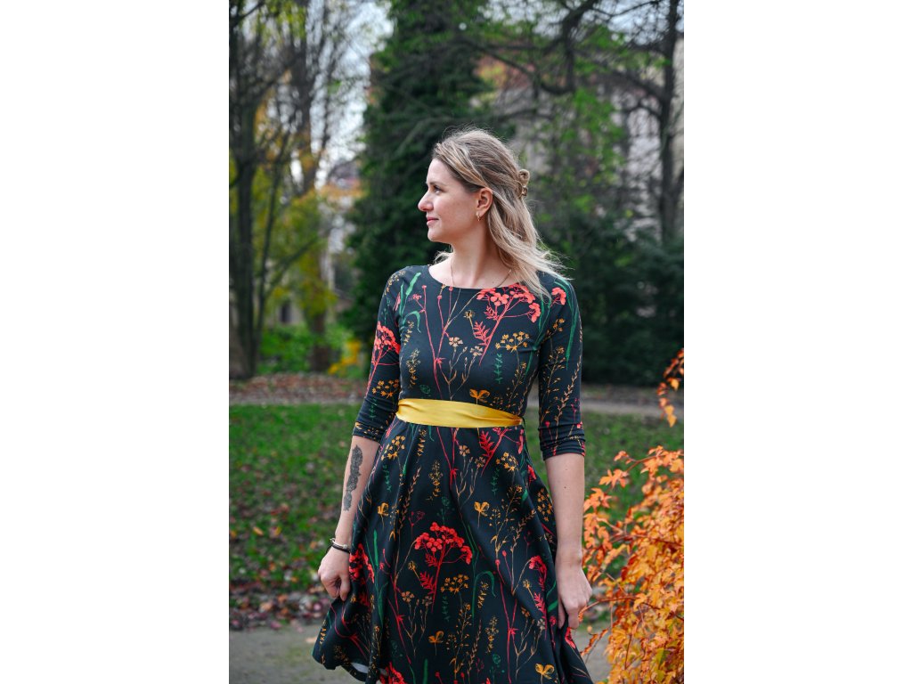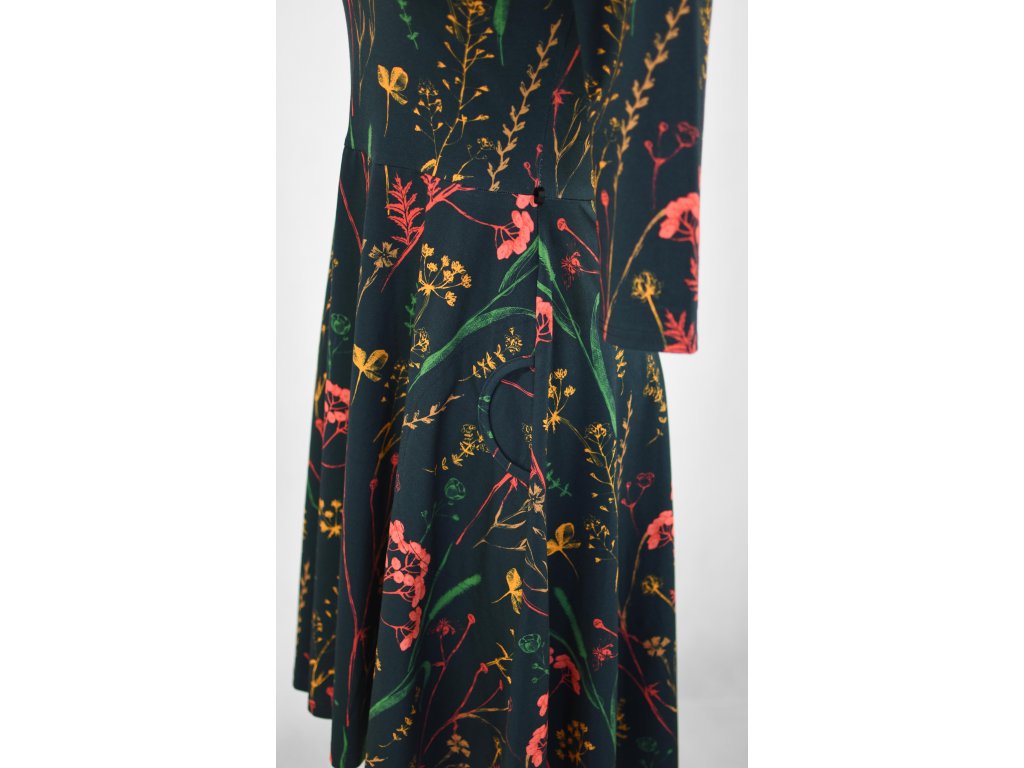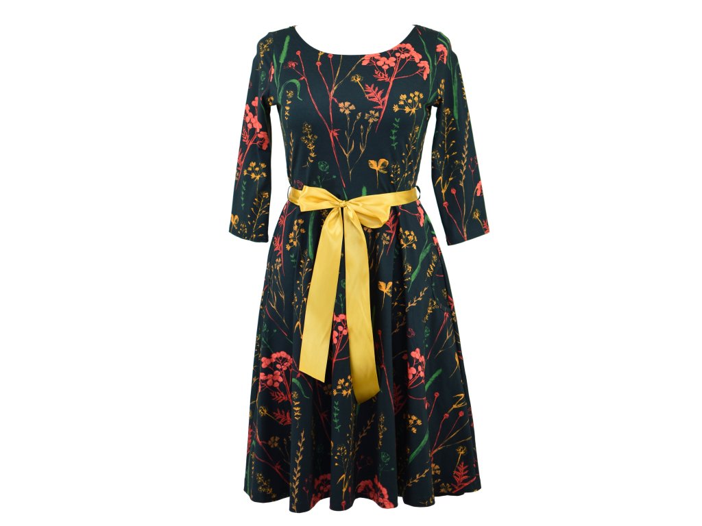 Půlkolové šaty 3/4 rukáv - herbář