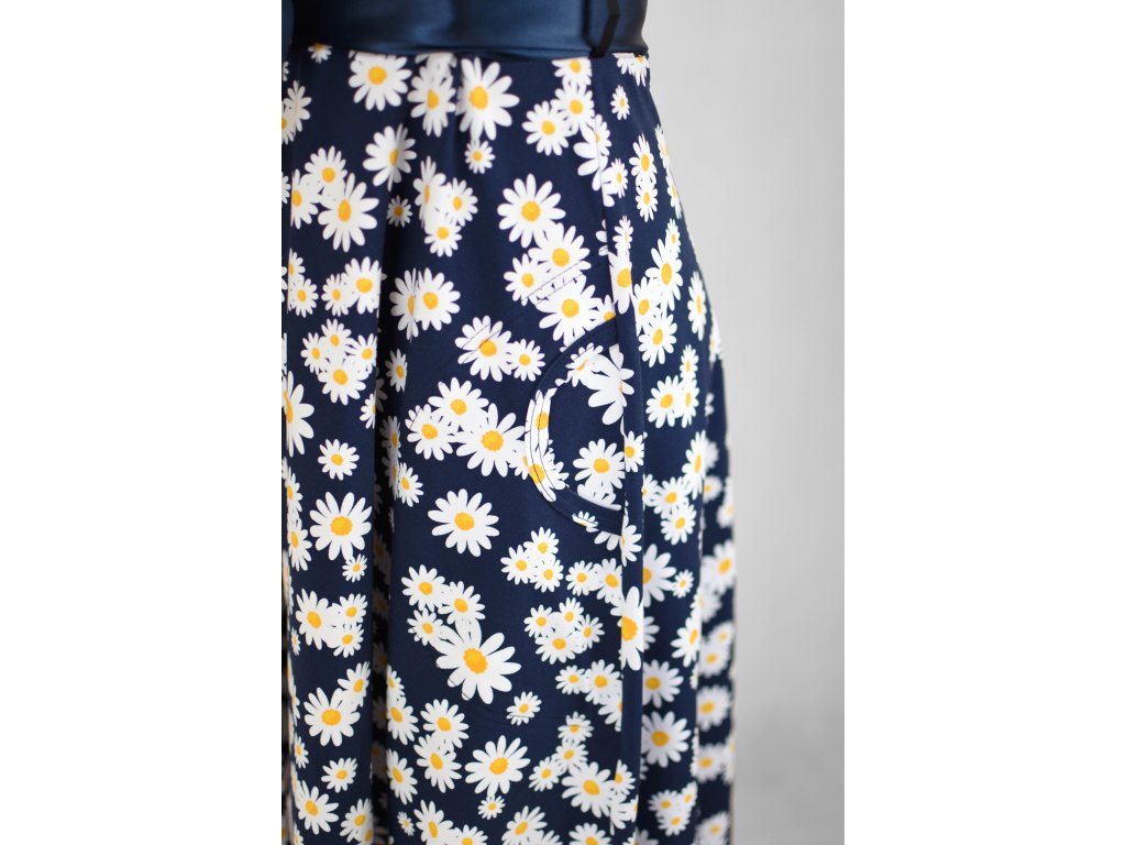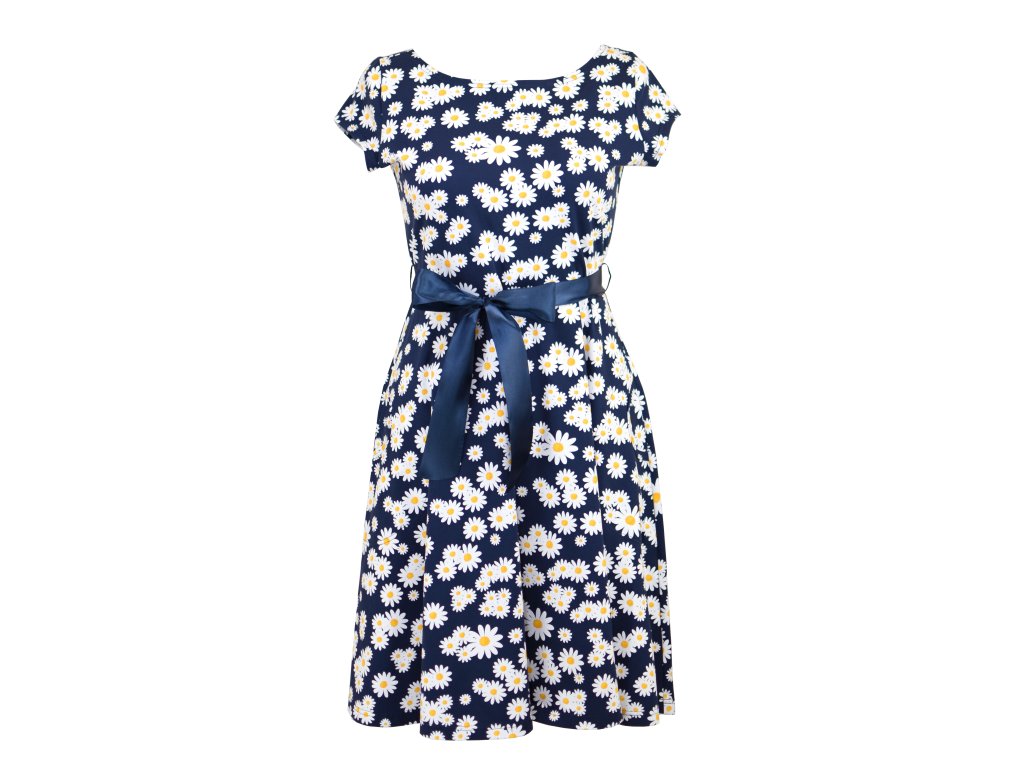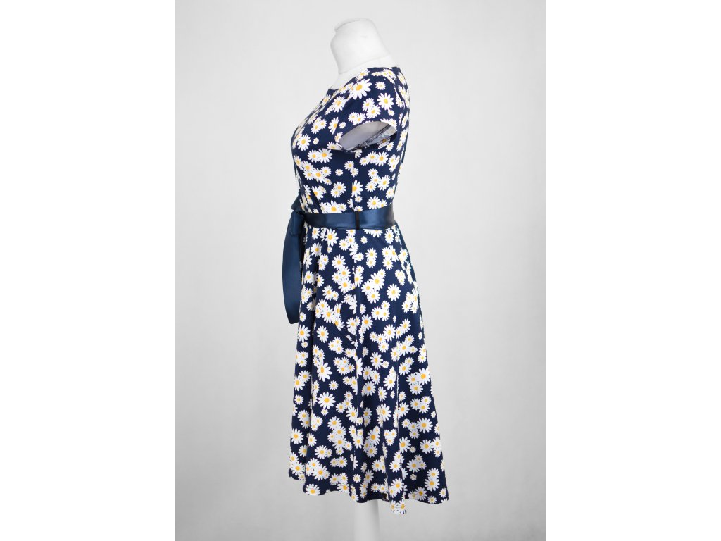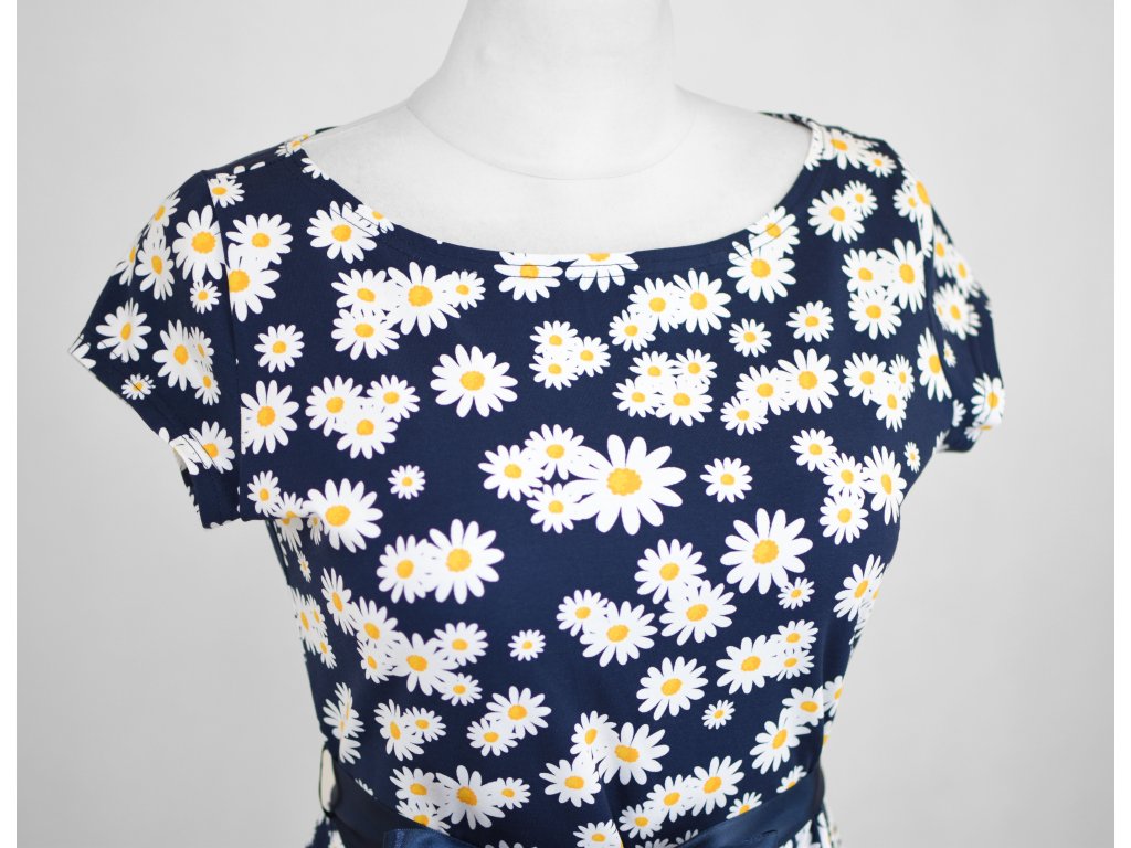 Půlkolové šaty - kopretiny na modré II.JAKOST