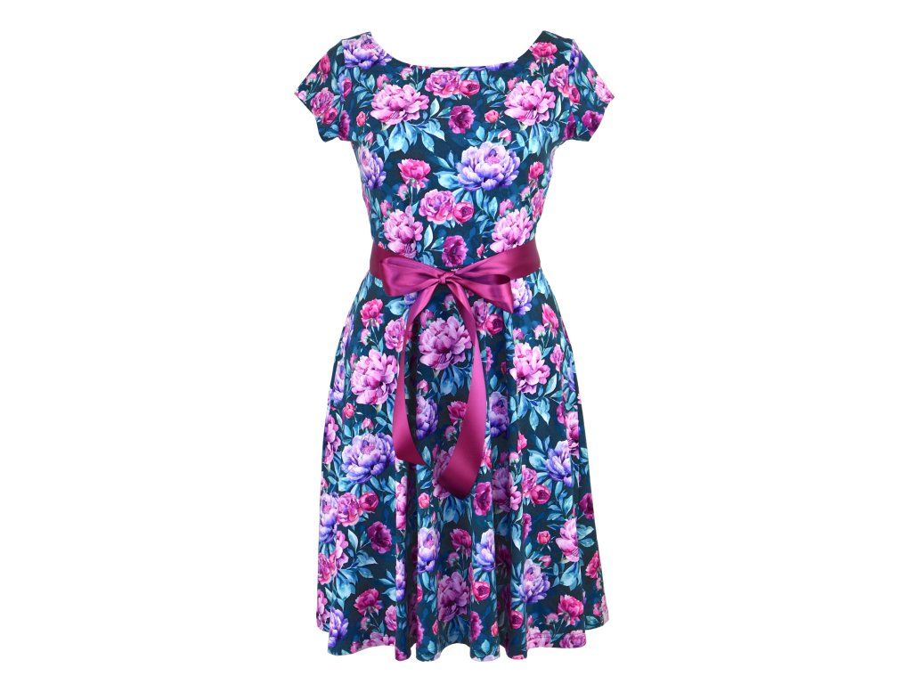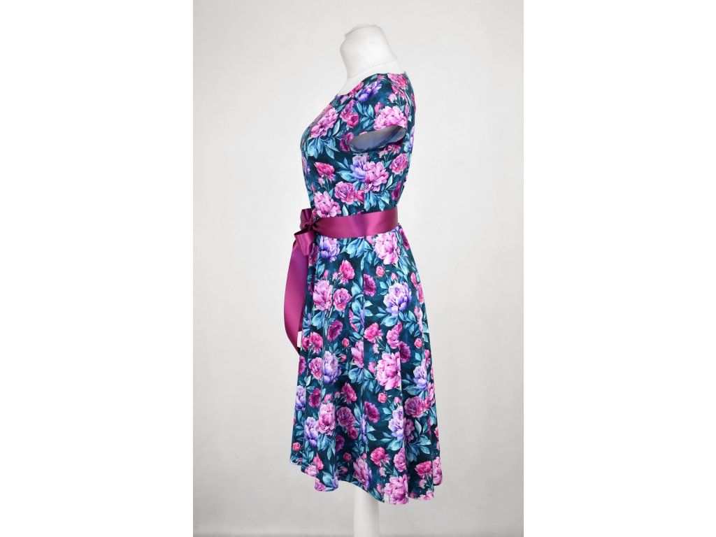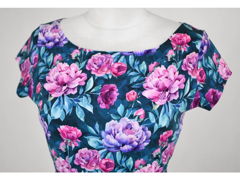 Půlkolové šaty - pivoňky