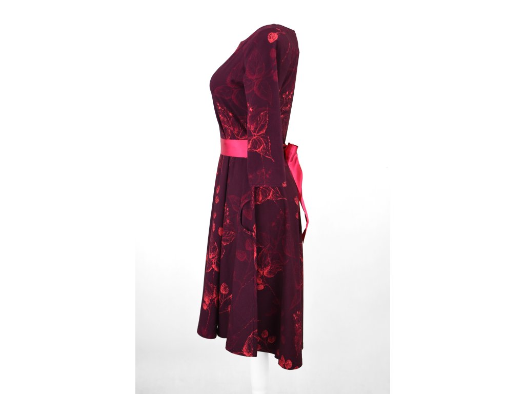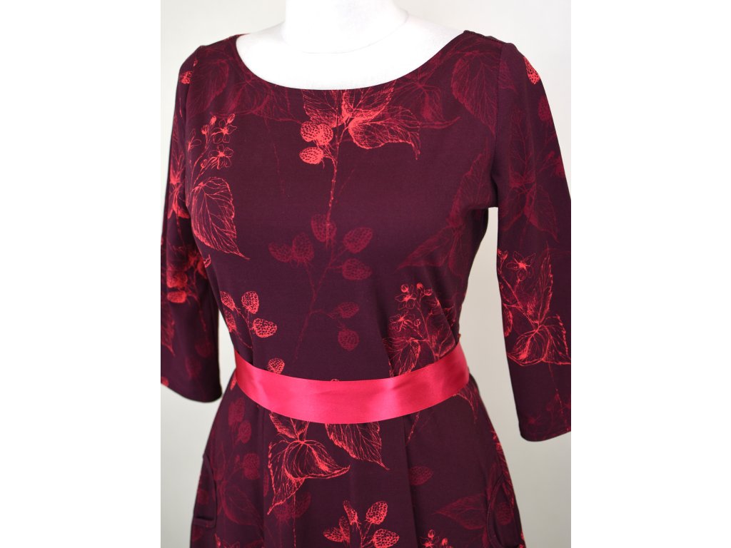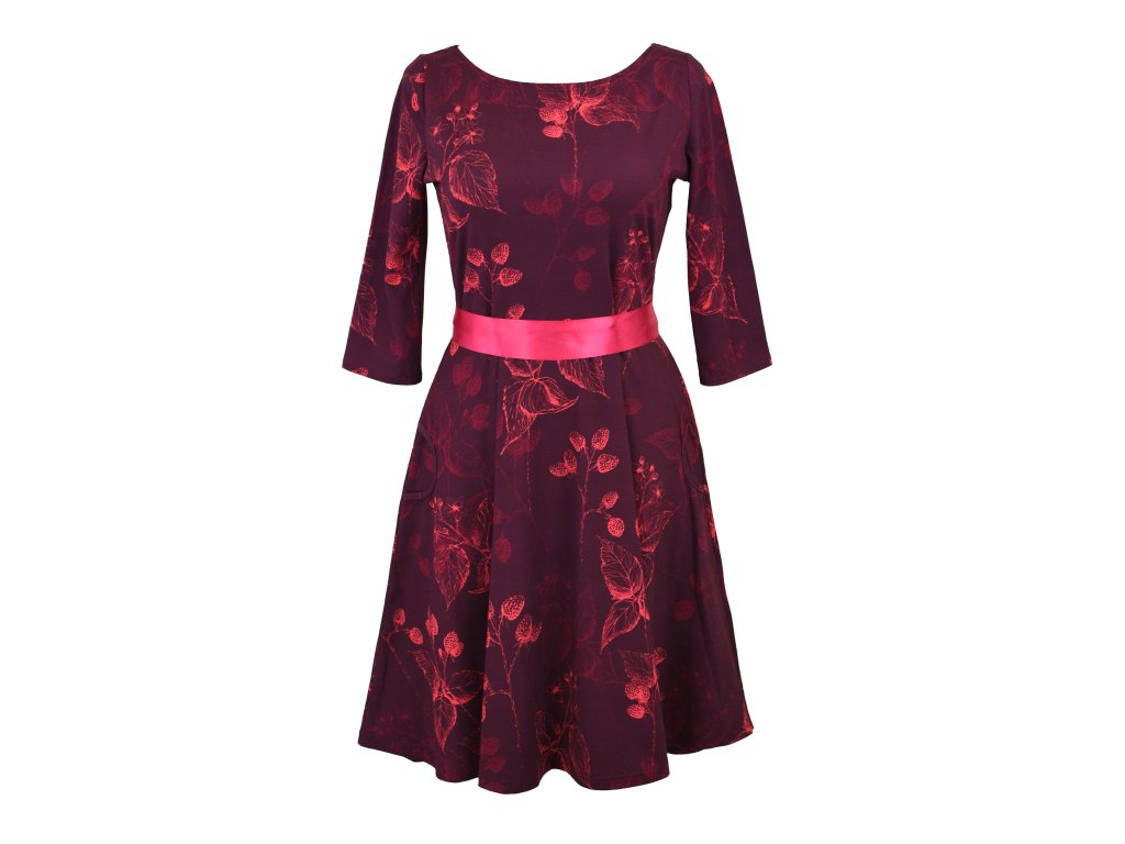 Půlkolové šaty 3/4 rukáv - ostružinové