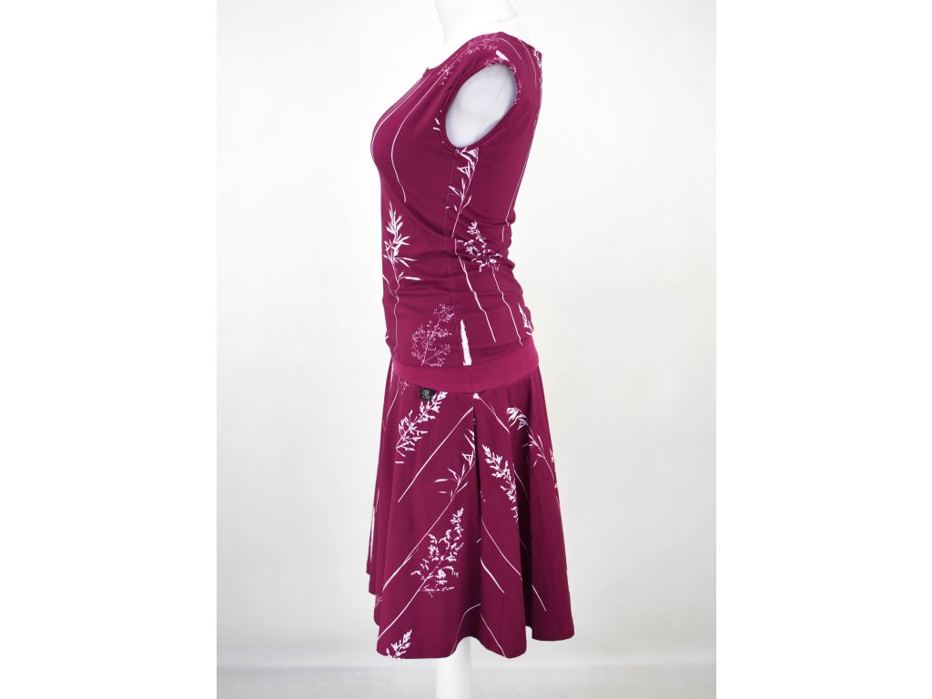 Půlkolové šaty přestřižené v bocích s pasovým nápletem, dají se tak podkasat - každý kdo jak preferuje. Lodičkový výstřih. Dvě schované kapsy v bocích nesmí chybět. :)