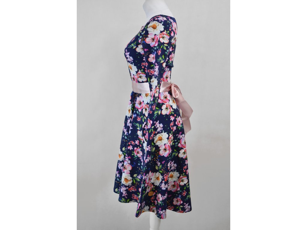 Půlkolové šaty 3/4 rukáv - šípková růže