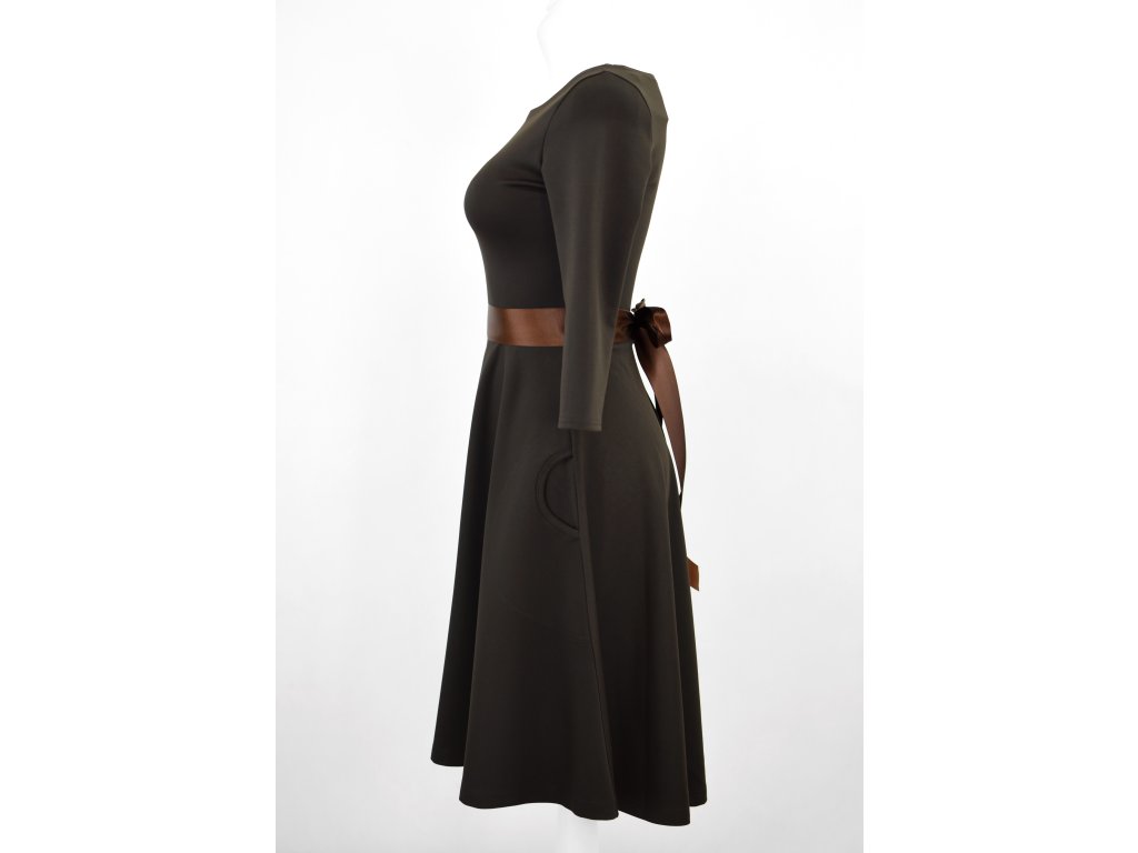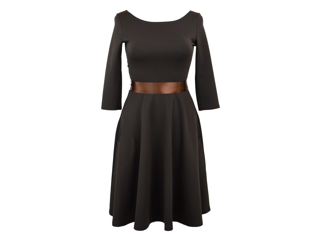 Půlkolové šaty 3/4 rukáv - tmavě hnědé