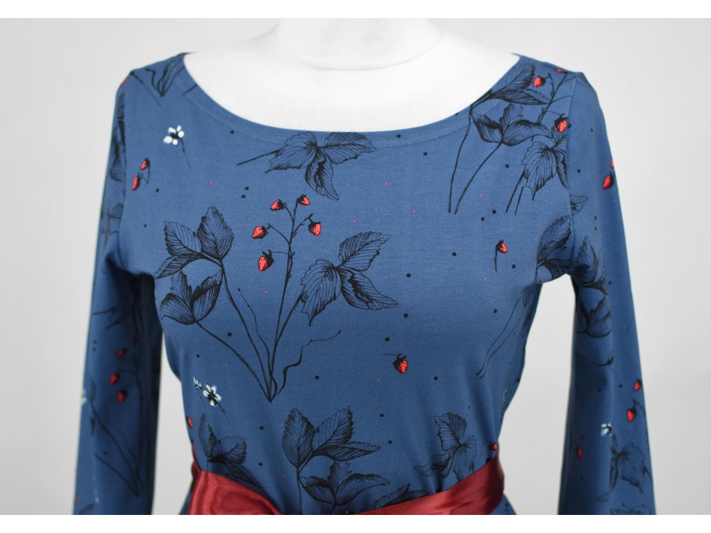 Půlkolové šaty 3/4 rukáv - jahůdky