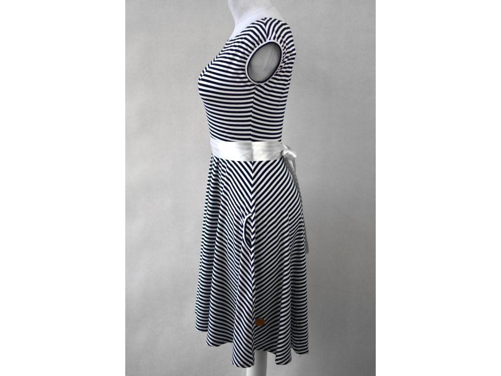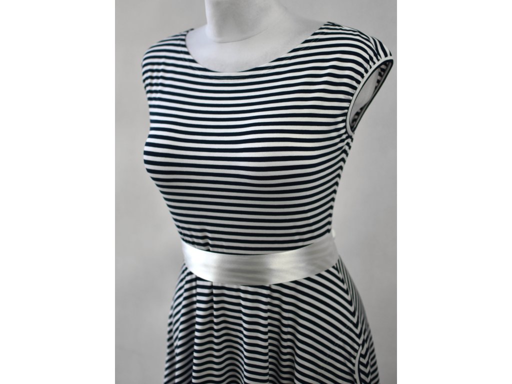 Půlkolové šaty - modré pruhované