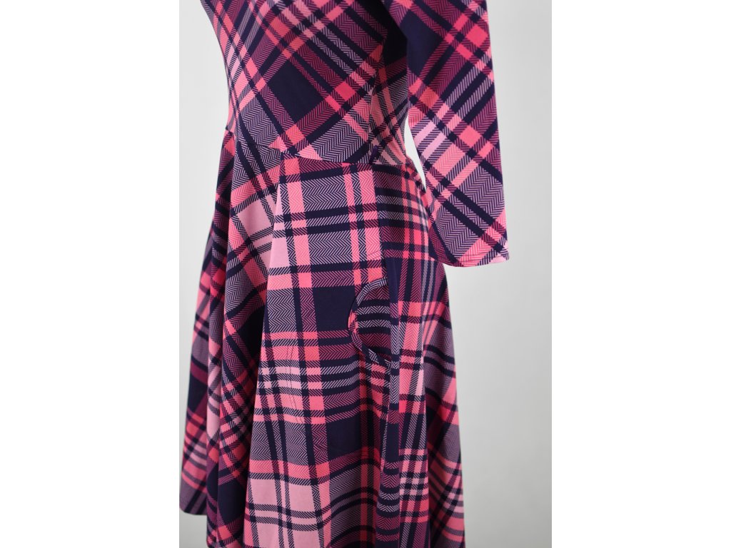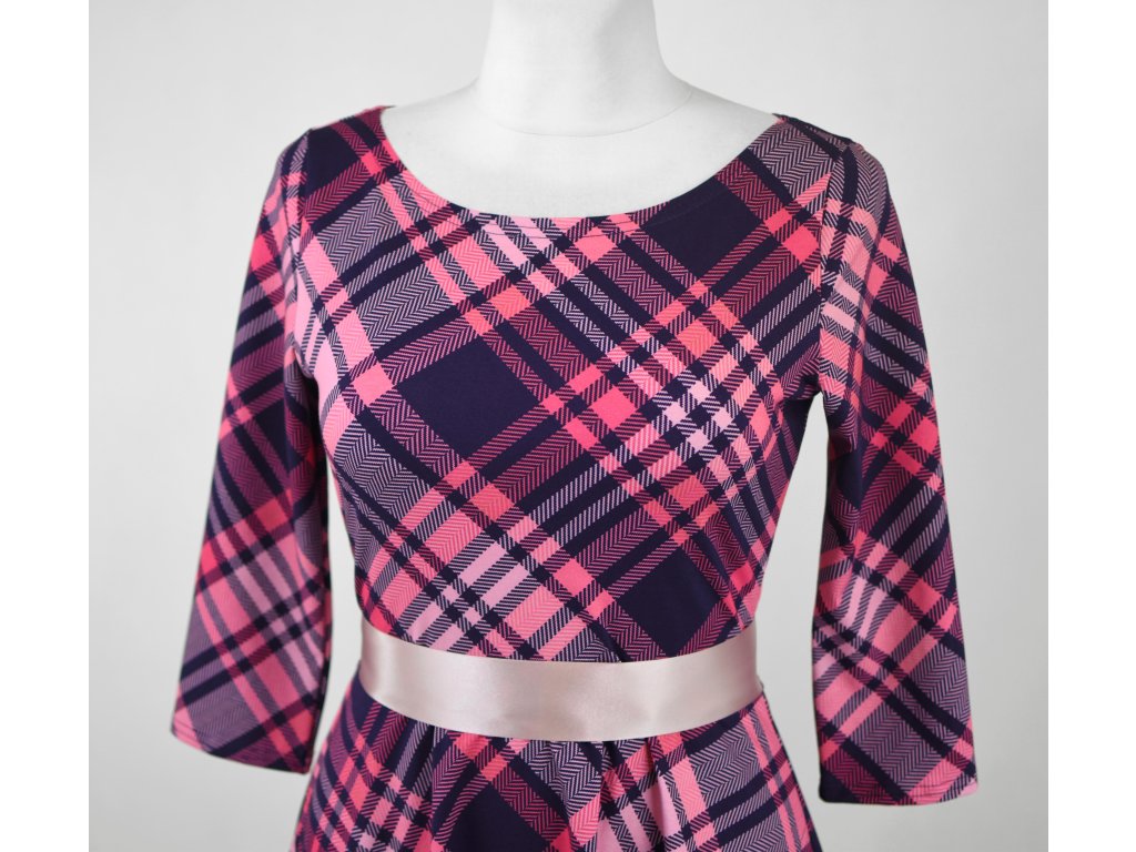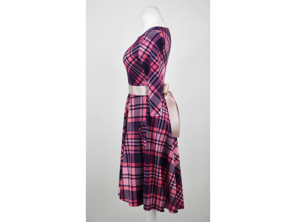 Půlkolové šaty 3/4 rukáv - růžová kostka