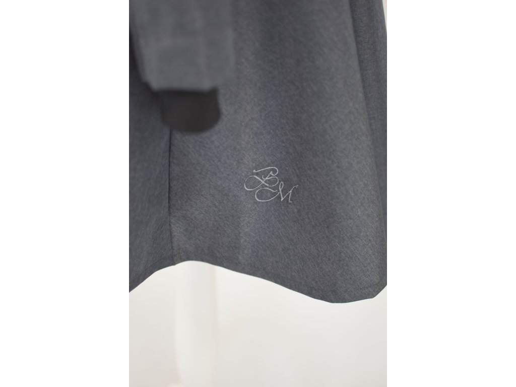Dámský kabátek s půlkolovou sukní. Střih je projmutý do pasu, zadní díl je stažený do pevně všité gumy. Zádní délka je delší než přední část, spodek zadního dílu se lehce rozšiřuje a dolní lem je dokulata, na zadním díle je vyšité logo. V bočním švu jsou dvě kapsy.