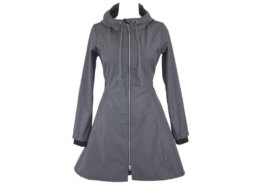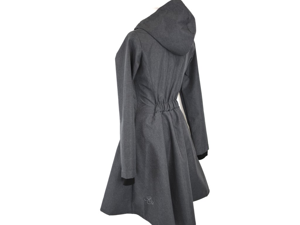 Důležité informace: Střih je hodně výrazný, určitě nesedne každému, ale v zásadě jde uplatnit jednoduché pravidlo - pokud jste zvyklé na kolové sukně, tento střih by mohl vyřešit problém "co na ně". :) Střih je spíše delší a vhodný pro postavy od 165cm, ale záleží na konkrétních proporcích. Do tohoto kabátku se nepočítá s nosící vsadkou - zip je jiný a dlouhý a celkově střih na nošení nedoporučujeme i kvůli výraznějšímu projmutí směrem do pasu. Tento kabátek je ušití již z klasického softshellu, poddá se... :)