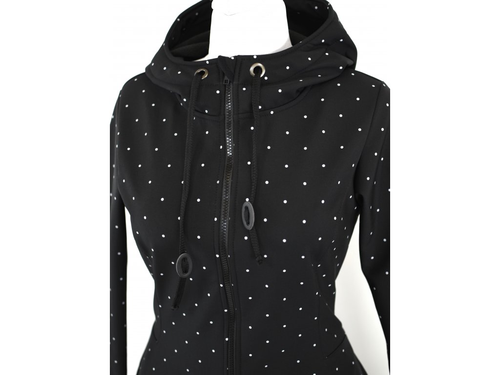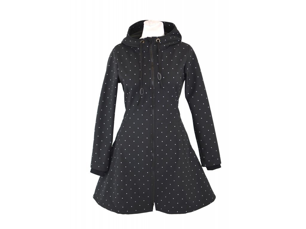 Softshellový kabát - půlkolový - černý s puntíčky