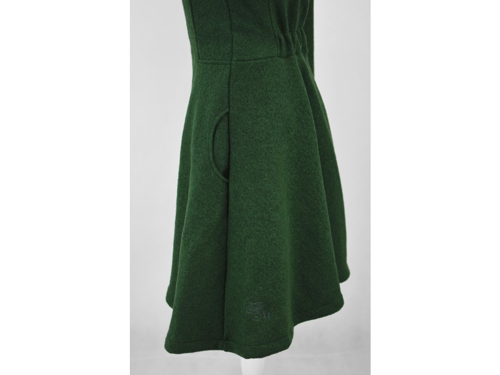Vlněný kabát - půlkolový - tmavě zelený