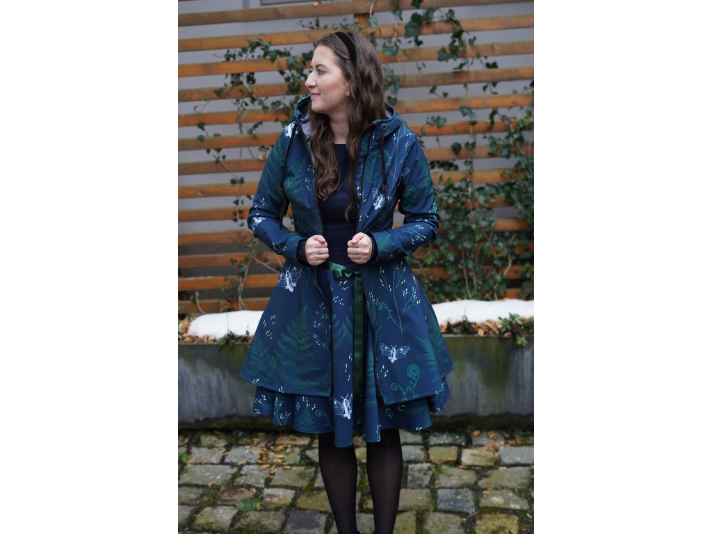 Dámský kabátek s půlkolovou sukní. Střih je projmutý do pasu, zadní díl je stažený do pevně všité gumy. Zádní délka je delší než přední část, spodek zadního dílu se lehce rozšiřuje a dolní lem je dokulata, na zadním díle je vyšité logo. V bočním švu jsou dvě kapsy - kapsový váček a kapsový průhmat je částečně ze softshellu a částečně z bavlněného úpletu (nebo plátna).