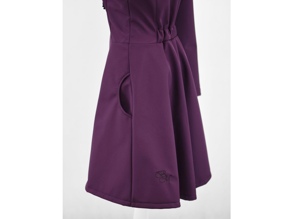 Dámský kabátek s půlkolovou sukní. Střih je projmutý do pasu, zadní díl je stažený do pevně všité gumy. Zádní délka je delší než přední část, spodek zadního dílu se lehce rozšiřuje a dolní lem je dokulata, na zadním díle je vyšité logo. V bočním švu jsou dvě kapsy - kapsový váček a kapsový průhmat je částečně ze softshellu a částečně z bavlněného úpletu (nebo plátna).