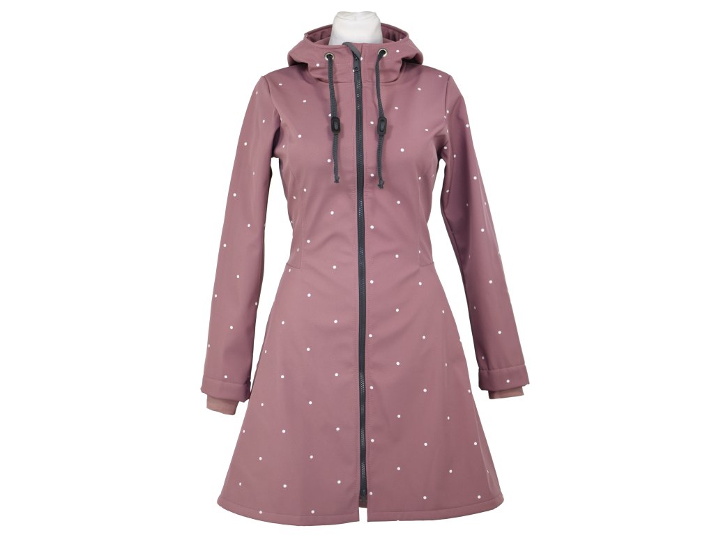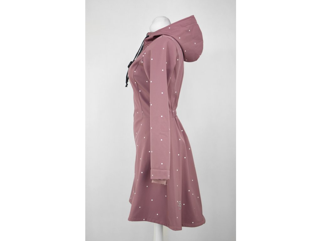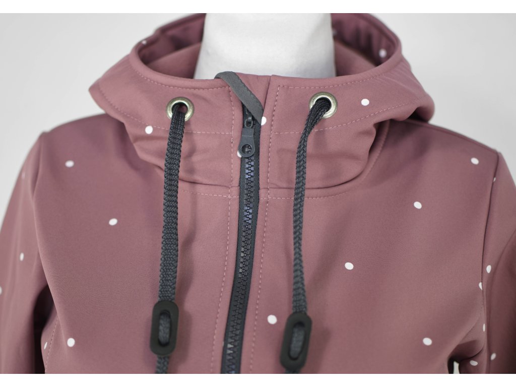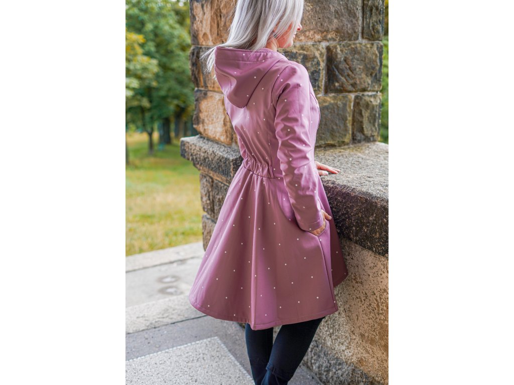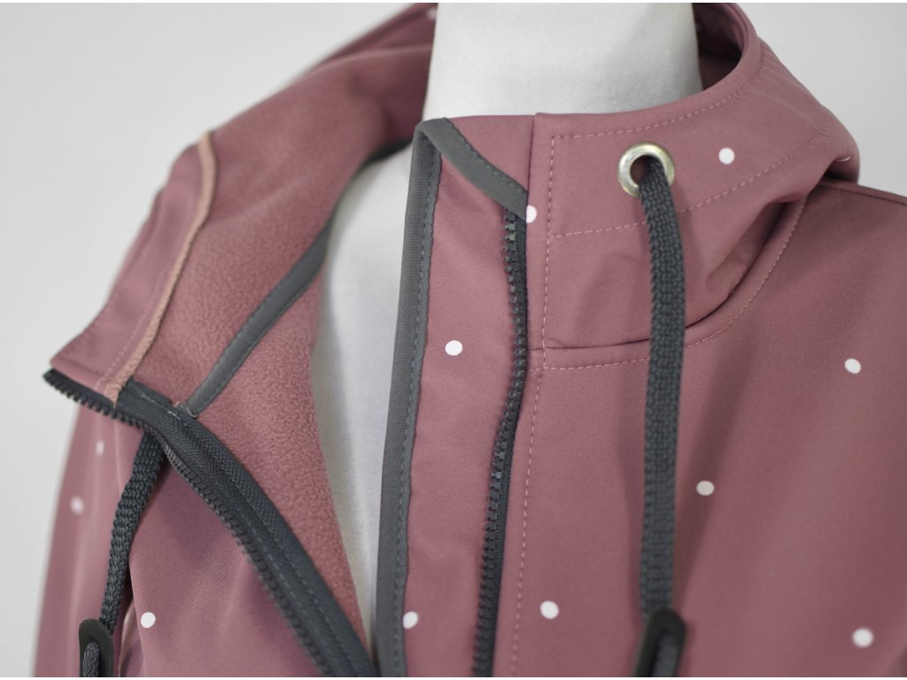 Softshellový kabát - půlkolový - starorůžový s puntíky