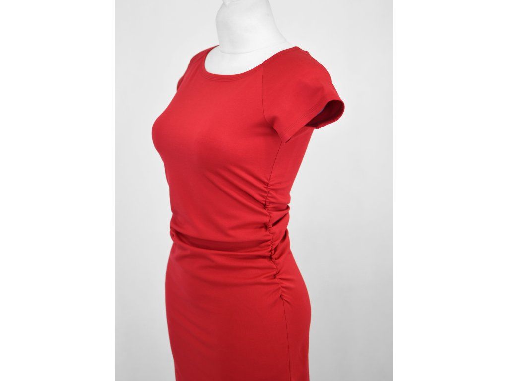Šaty řasené - krátký rukáv - červené