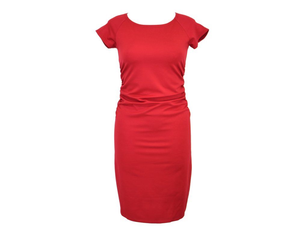 Dámské šaty s řasením v pase, vhodné na denní nošení i formálnější události. Raglánové krátké rukávy. Šaty nemají kapsy.