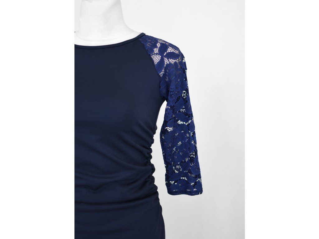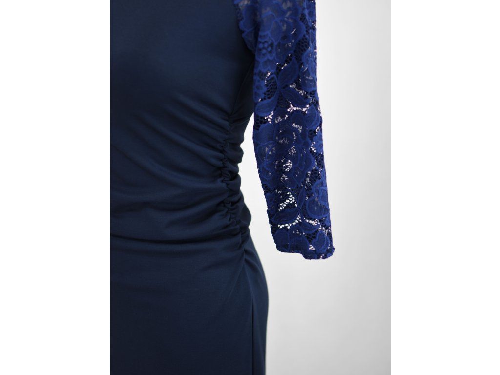 Šaty řasené s krajkovými rukávy - tmavě modré A